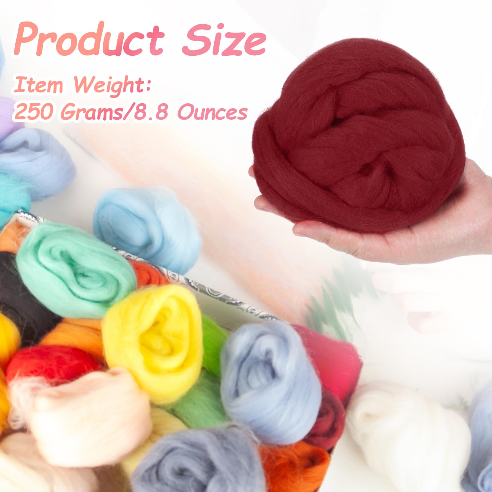 Advantage: This wool roving yarn is made of soft and durable wool material, fluffy and soft, comfortable to touch. It has good ductility and has a good shaping effect, which can be quickly and easily shaped into any shape you want, suitable for DIY projects.