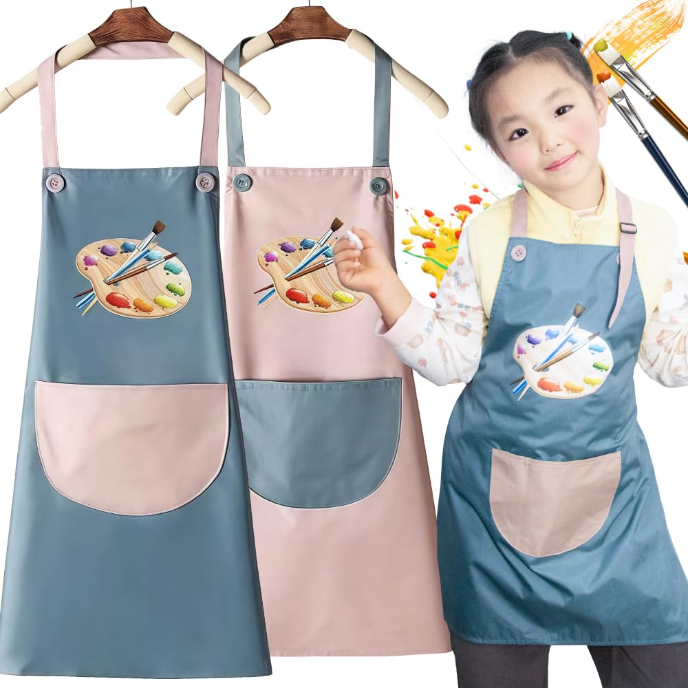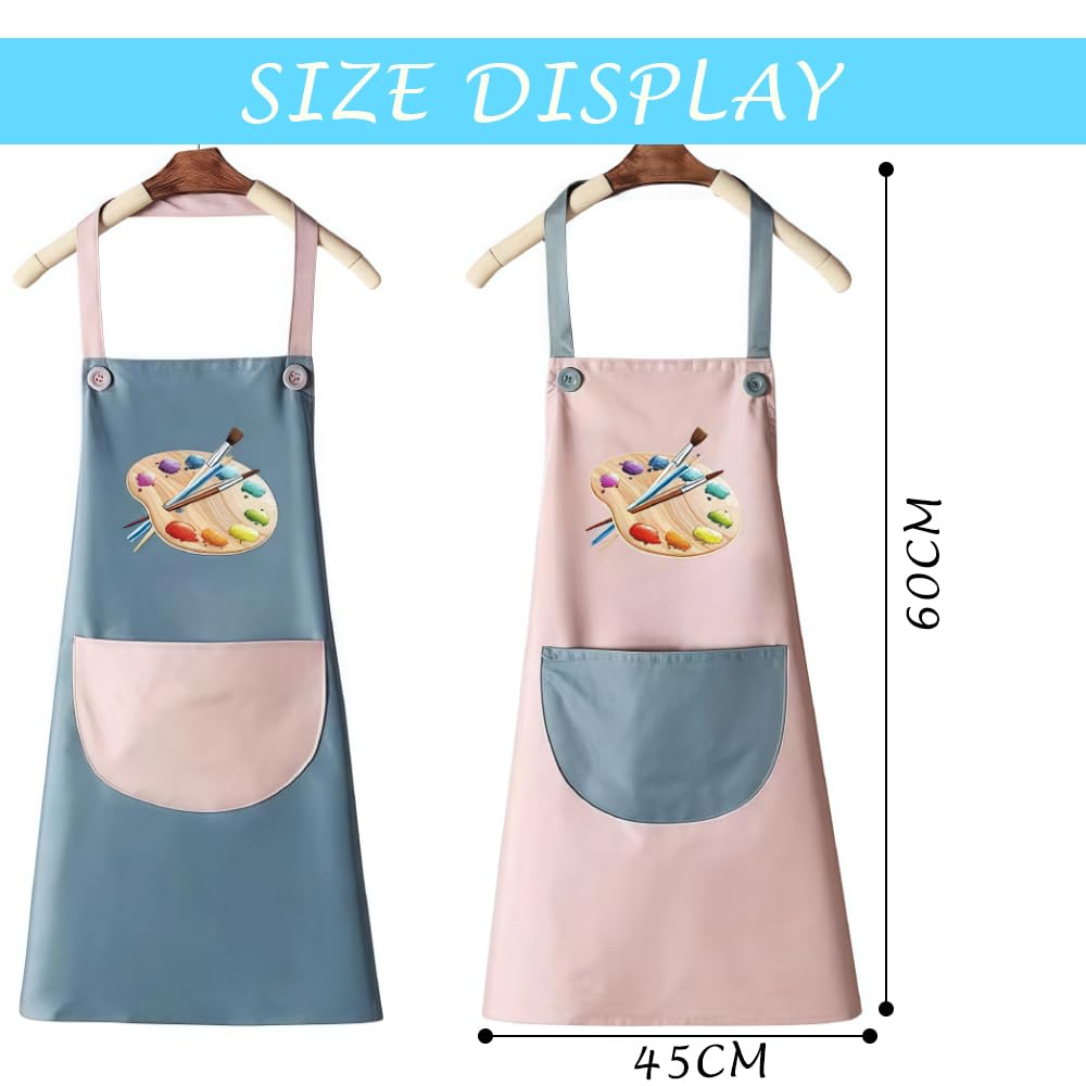 - You Will Receive : You will receive two children’s painting aprons. Both are in blue and pink patchwork, and both have a drawing tray and paintbrush pattern in the middle. There is also a large pocket at the waist for children to put some paintbrushes, craft supplies and so on, very simple and practical!