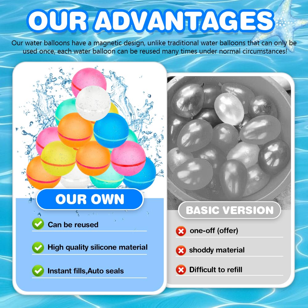 - Perfect for All Occasions: Whether its a birthday party, family gathering, or a hot summer day, the Reusable Water Balloons are perfect for all occasions. Bring excitement and laughter to any event with these fun-filled water balloons!