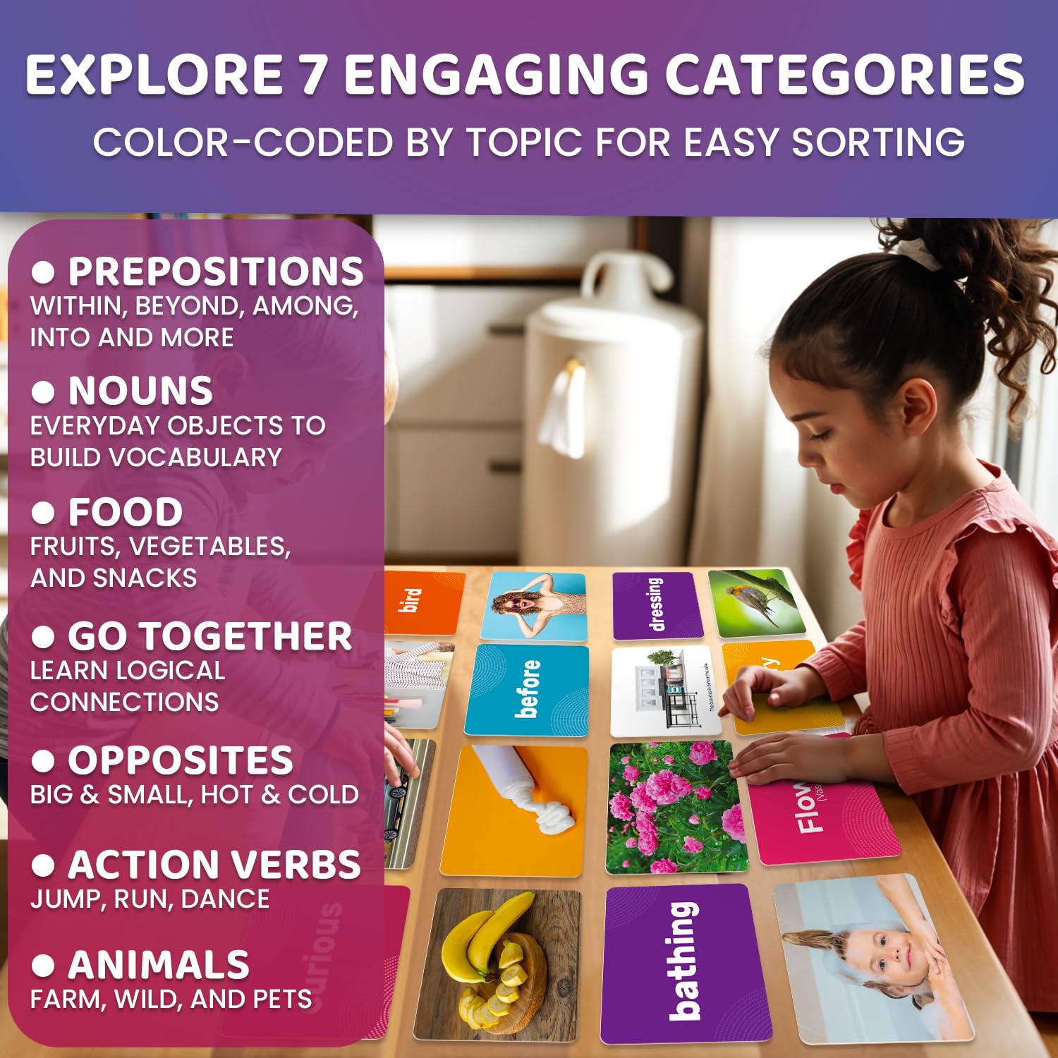 An excellent tool for homeschooling use this set of sight words flash cards 7×52 gives an engaging opportunity to begin recognizing letters, building vocabulary and developing reading skills. Working with flashcards is a proven way to improve memory and retention of knowledge.