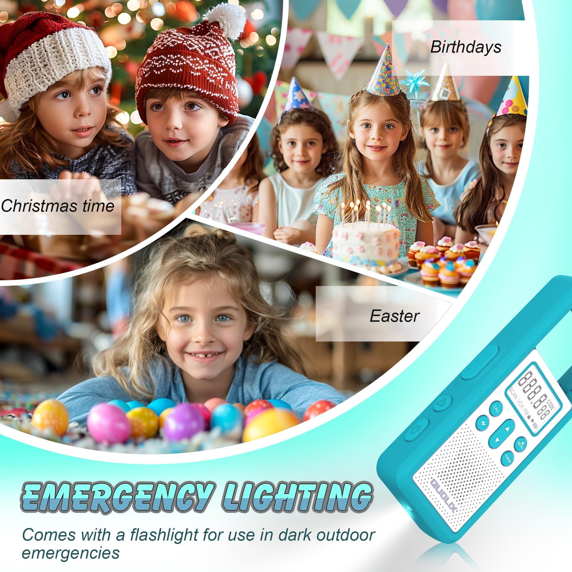 - Ideal Gift for Kids Ages 3-12:QUOLIX Walkie talkie for kids has a stylish look and nice packaging, Ideal for boys and girls aged 3-12 years old, You can give it to them as a surprise on birthdays, Christmas, New Year, Thanksgiving.