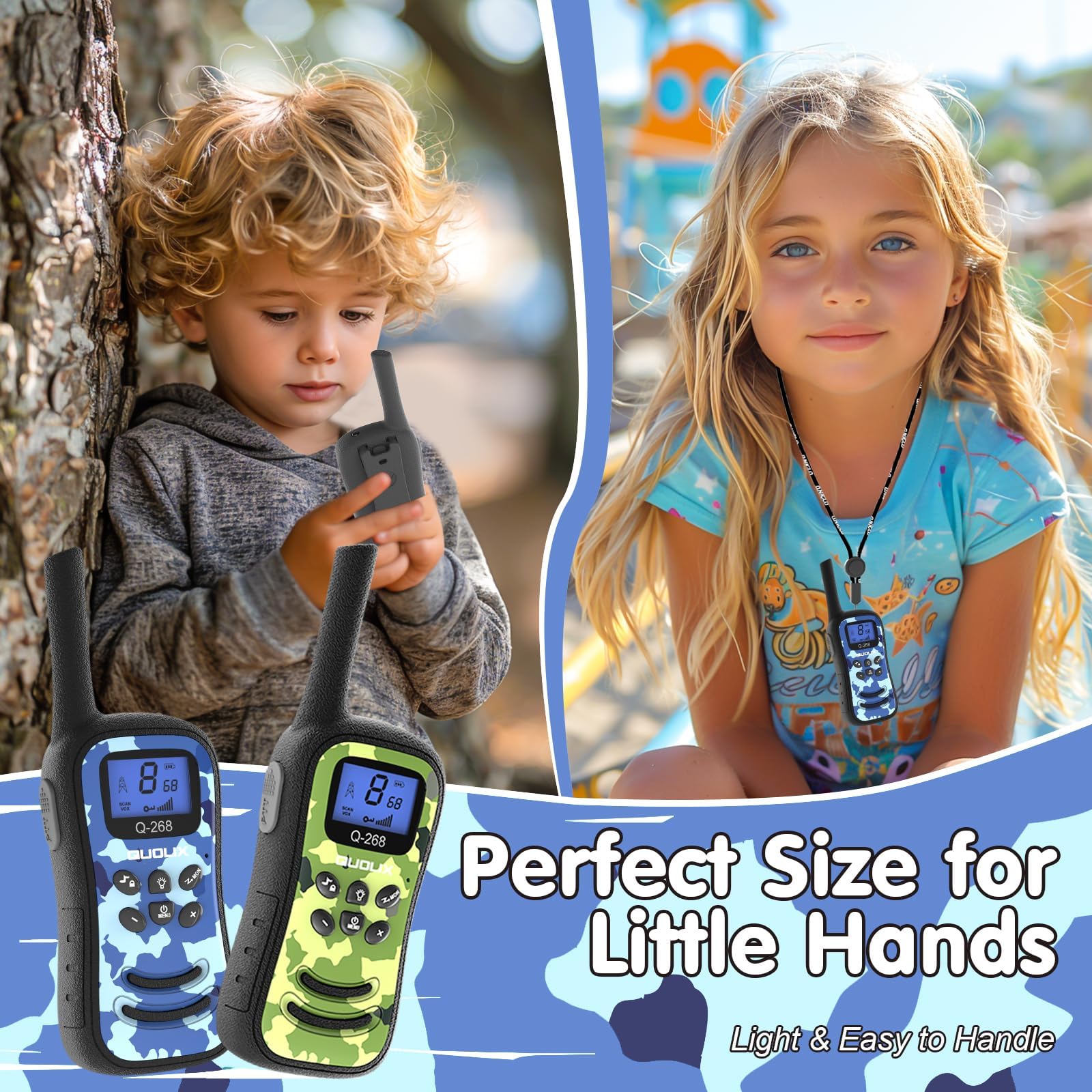 QUOLIX Rechargeable Walkie Talkies for Kids 3-12 Year Old, Long Range 3KM 2 Way Radio with LED Torch, VOX Hands Free, 99 Privacy Codes, Outdoor Camping Toys Gift for Boys Girls (Camouflage Design)
