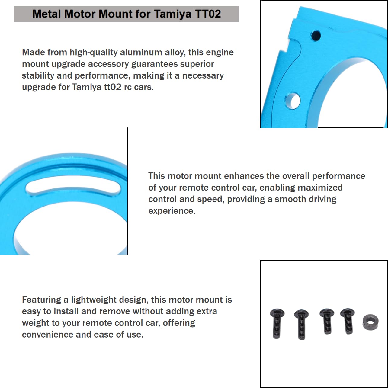 - [Ideal spare parts] Upgraded RC metal aluminum alloy motor mount, specially designed to improve the strength and durability of your tt02 1/10 rc car, guaranteeing improved performance.