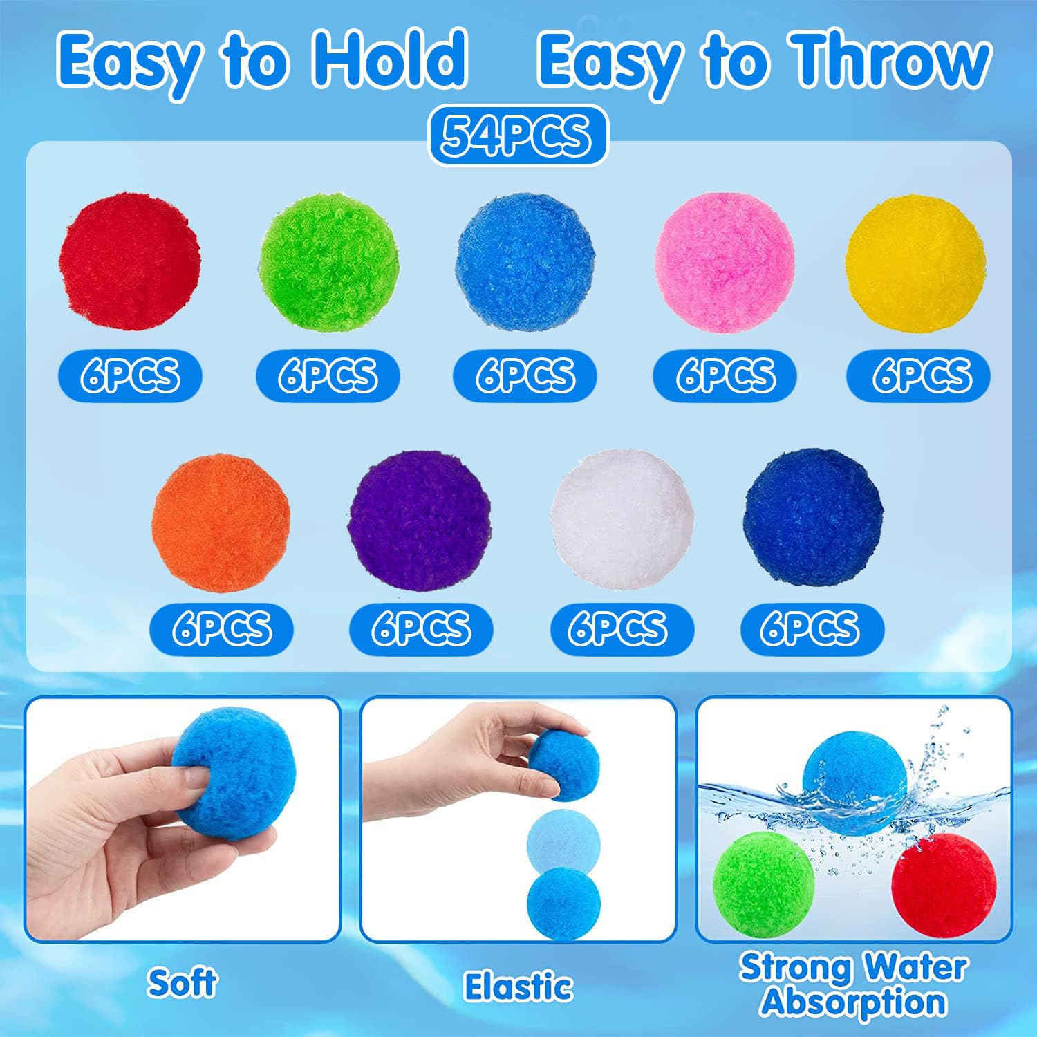Reusable Water Balls, 54 Pieces Plush Water Ball, Water Splash Ball, Reusable Water Ball, Water Balloon for Children, Colourful Water Bombs for Summer Outdoor Party