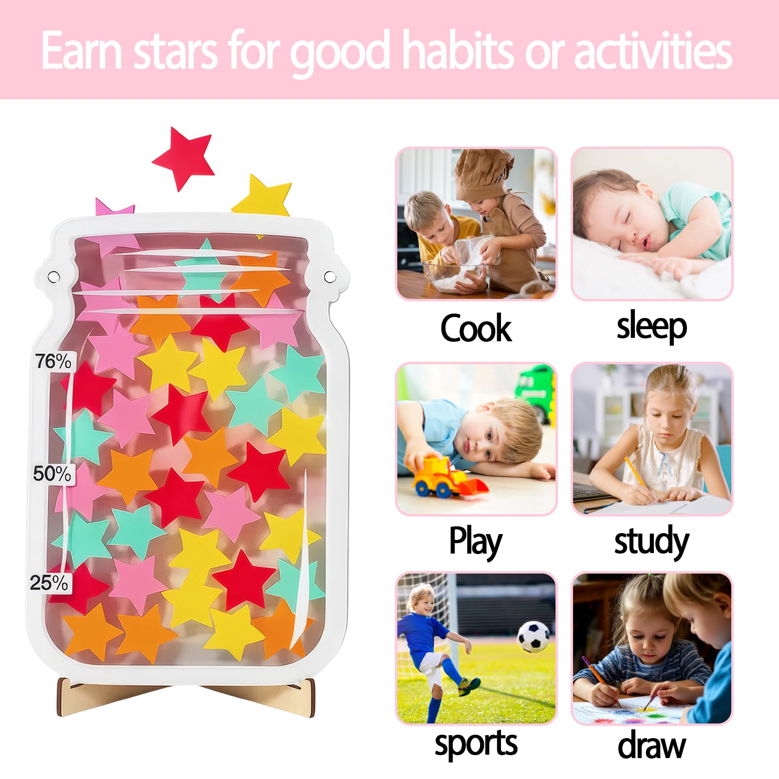 - Reward Chart for Children Behavior: Designed to motivate and track positive behaviors in children; Ideal for parents and teachers to encourage good habits, chores completion, and classroom participation; The star jar reward system provides visual progress tracking
