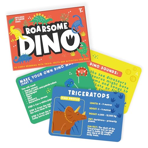Roarsome Dinosaur Kids Trivia Cards Fun & Educational Dino Quiz and Activity Flash Cards for Ages 5-7 with Pop-Out Dinosaur Craft Fun Gift for Boys & Girls
