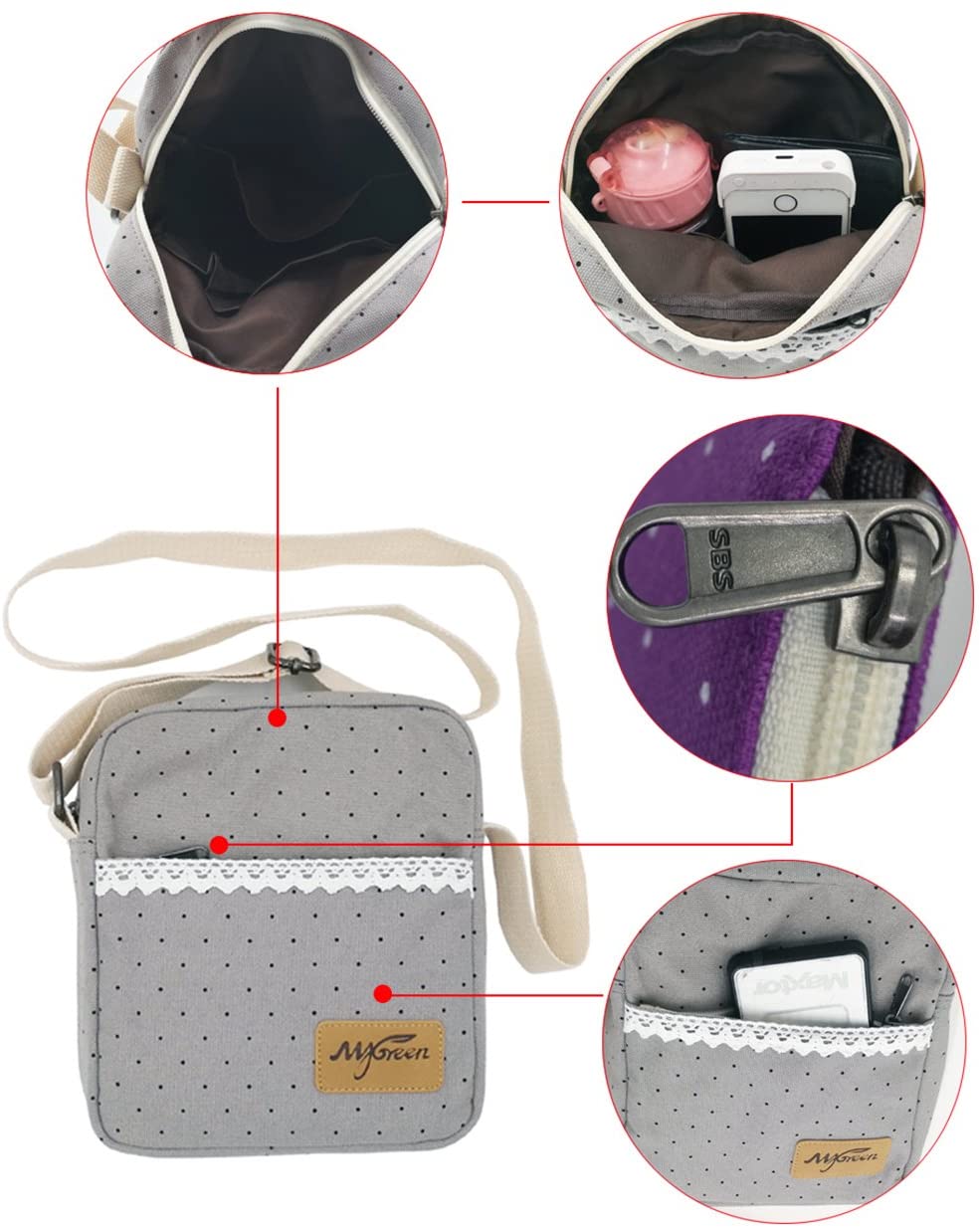 Shoulder Bag for Girls, Cute Canvas Sling Bag Shoulder Bag Pencil Case Pencil Bag 2 PCS by Mygreen (Gray)
