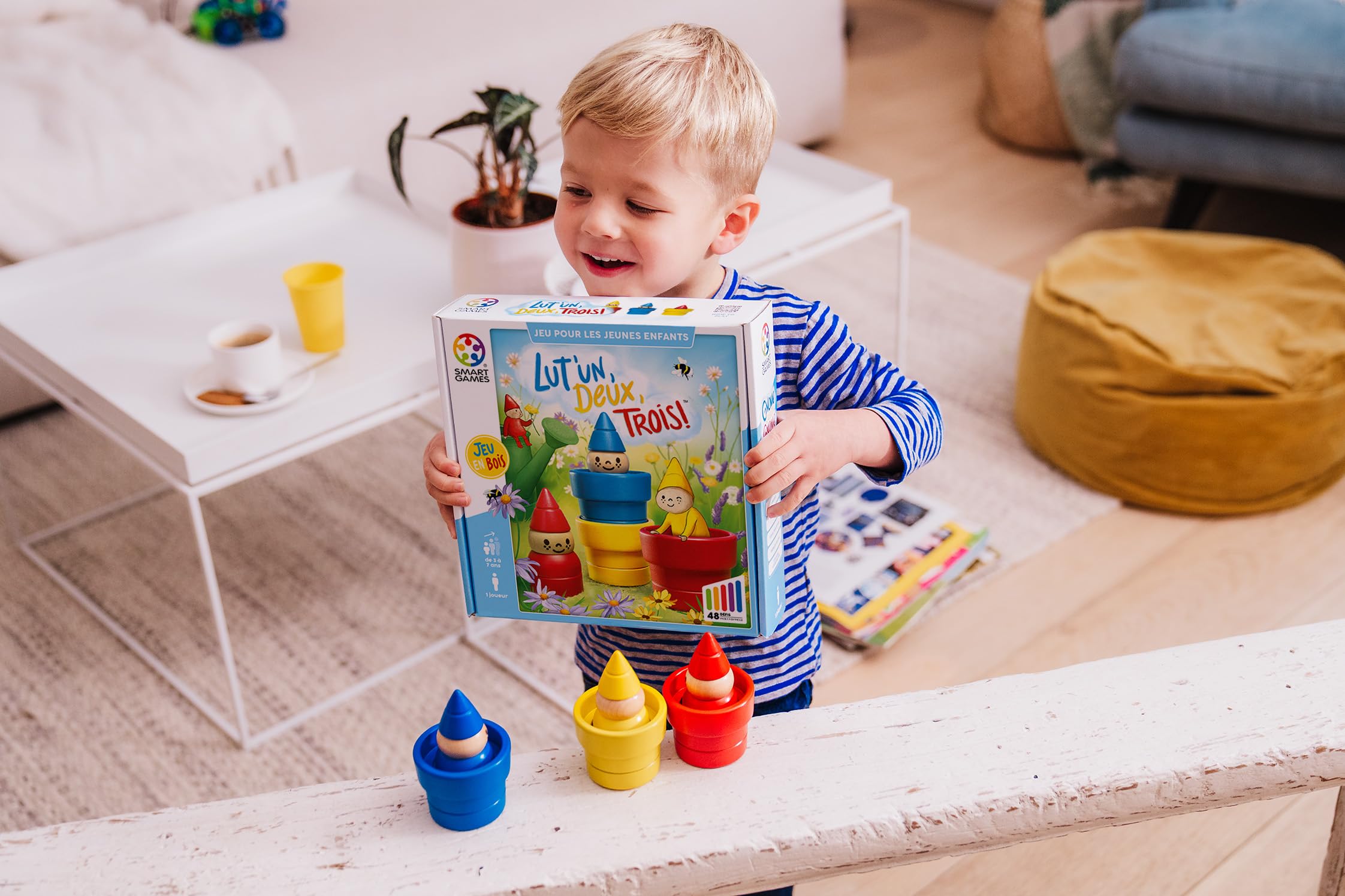 3 cheeky gnomes have set up their home in your garden! Can you find out where they are hiding? Try to recreate one of the 48 challenges suited for 3 to 7-year-olds. This wooden matching game for pre-schoolers helps their logic and deduction skills flourish. Cultivate your toddler’s talents by stacking, counting, hiding, or playing with these little figurines.