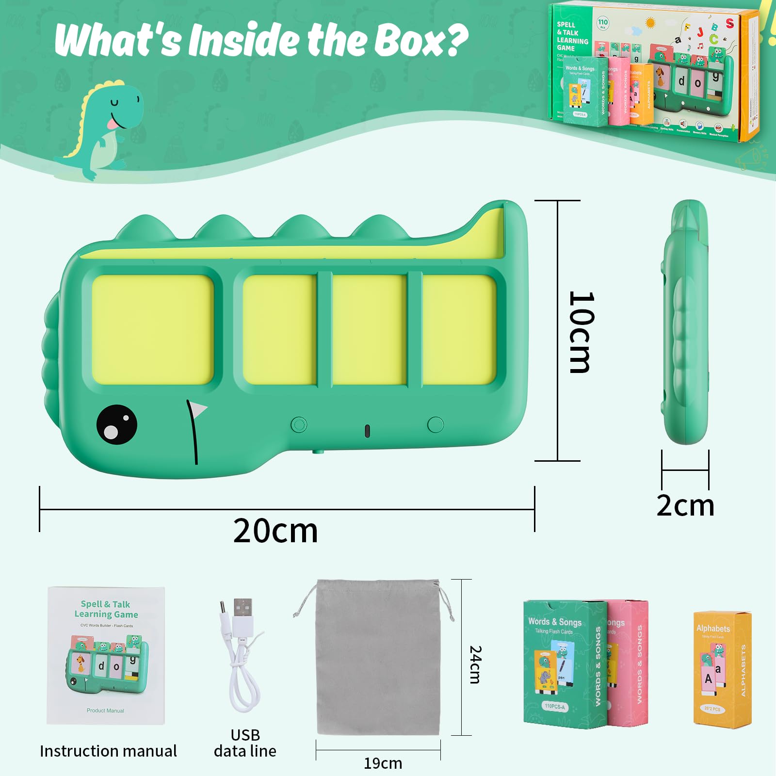 Spelling&Talking Flash Cards for Toddlers 3+ Years Old – Speech Therapy with 107 Sight Words – Sensory Toys for Kids with Autism, Alphabet Learning, Montessori Learning Toys Gift for Kids – Green