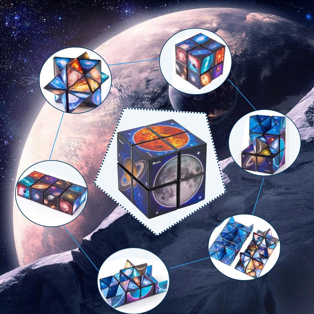 2-in-1 Design with Solar System ThemeThis infinity cube set features a captivating starry sky and galaxy design, including planets like Saturn, Earth, and Venus. It helps children learn about the solar system in a fun, hands-on wayperfect for inspiring young space enthusiasts ages 5 and up.