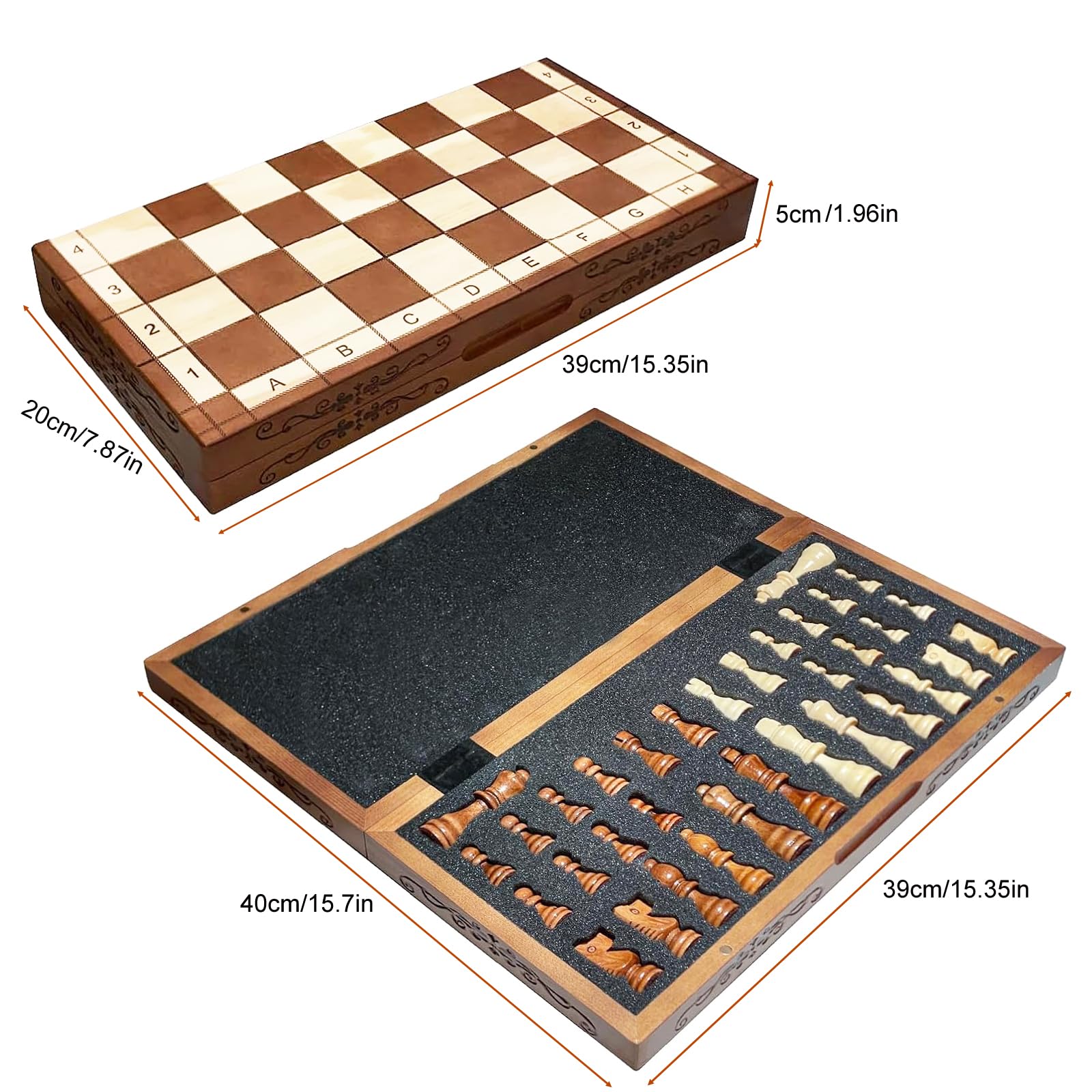 Syrace Magnetic Chess Set Board Games, Kids and Adults Wooden Foldable Hand Carved Portable Travel Board Game Sets with Game Pieces & Storage Slots 15.74″ (luxurious Magnetic Chess)