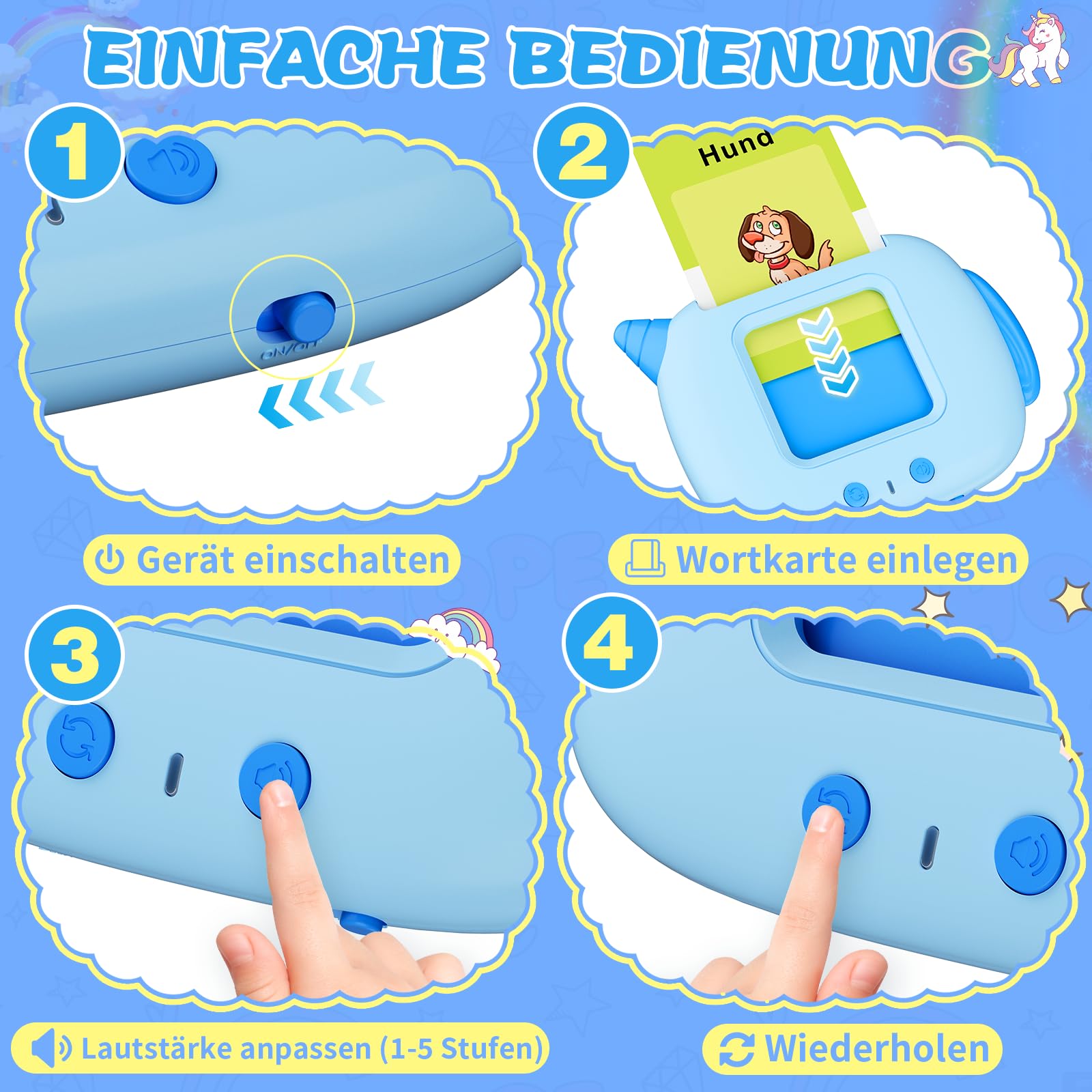 Talking Flash Cards, 420 Words Early Educational Toy, Preschool Learning Machine with British English for 2 3 4 5 6 Year Old kids, Montessori Toys for Toddlers, Gift for Boys Girls (German-Blue)