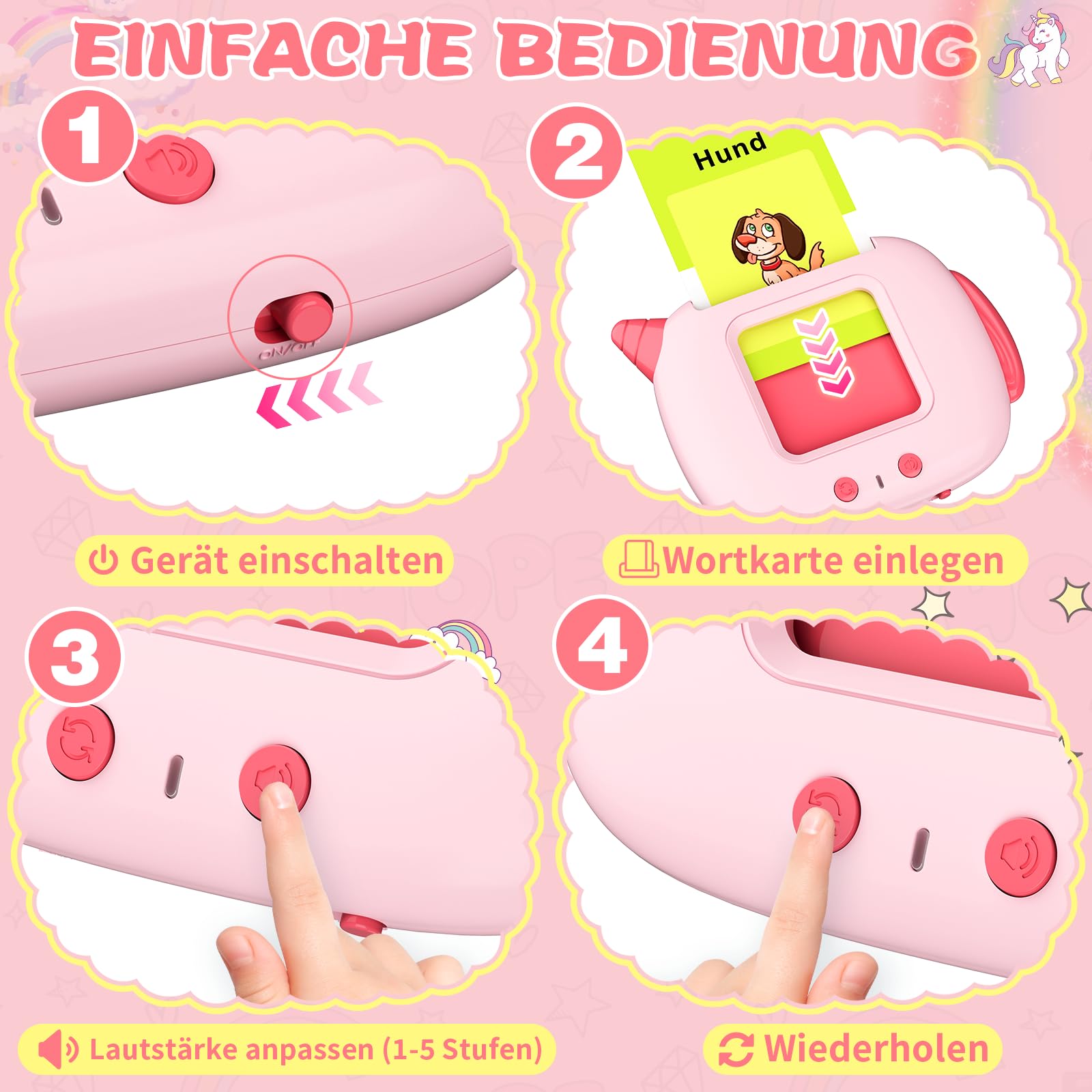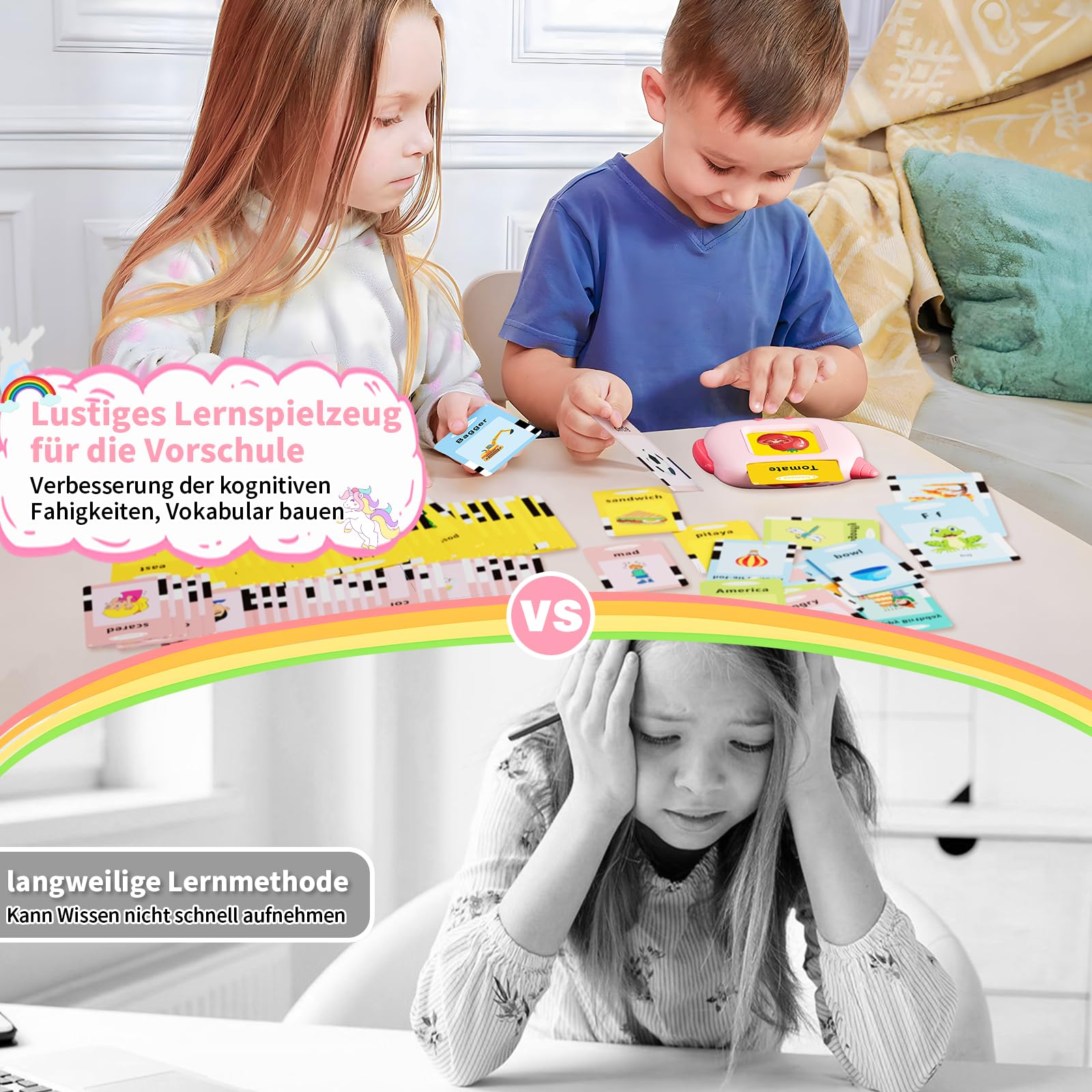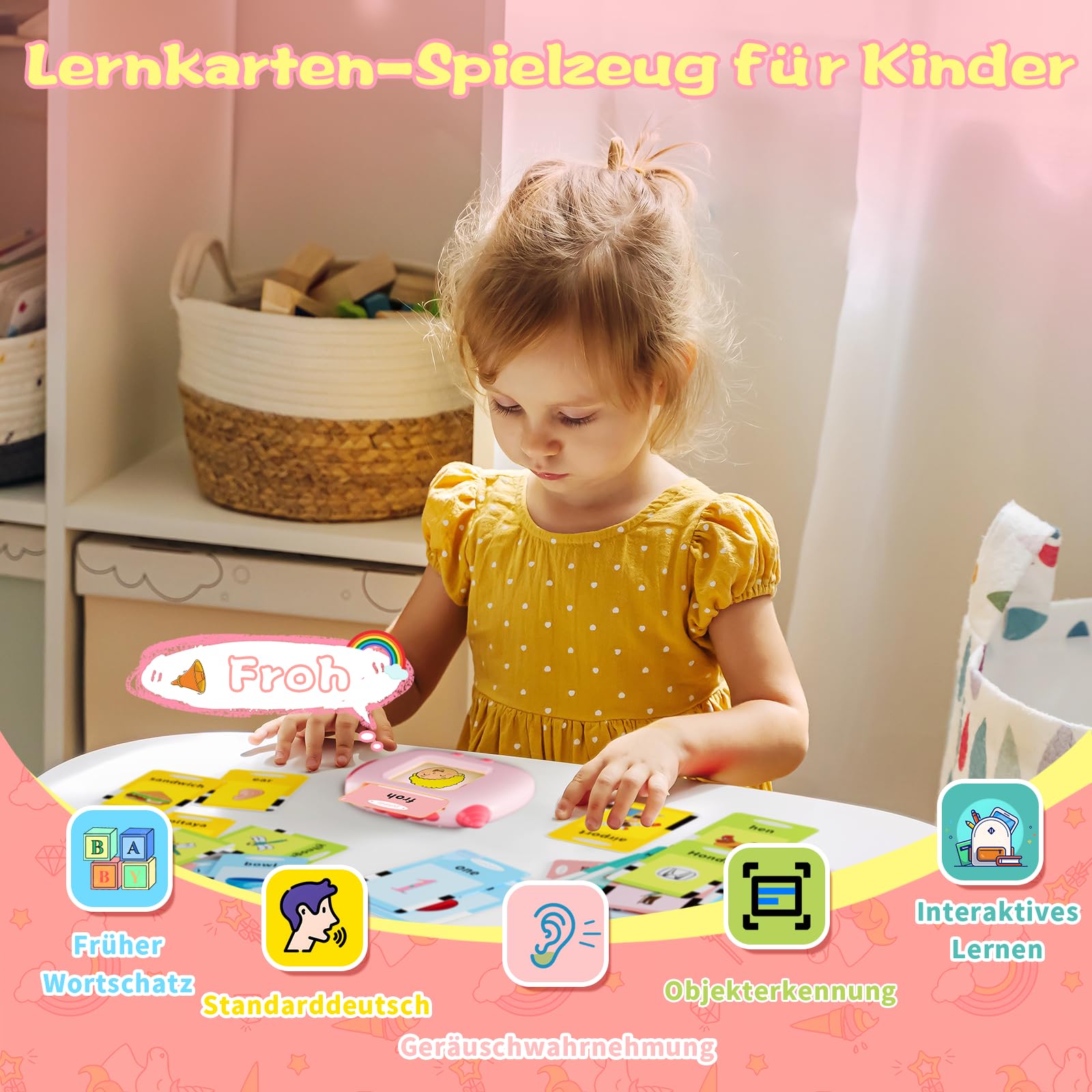 Talking Flash Cards, 420 Words Early Educational Toy, Preschool Learning Machine with English for 2-6 Year Old kids, Montessori Toys for Toddlers, Interactive Gift for Boys Girls (German-Pink)