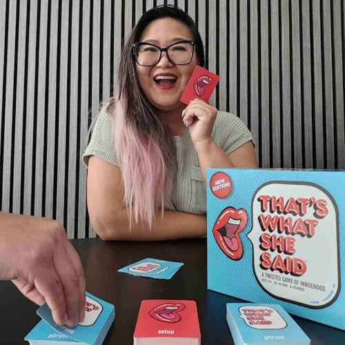 Discover Endless Laughter with “That’s What She Said – Second Edition”! This ALL NEW version of “That’s What She Said,” is back with even more outrageous and wild situations that create a whole new bunch of innuendos! Get ready for an uproarious experience as players match wacky red setup cards with the funniest blue phrase cards. Who among your friends has the dirtiest sense of humor? Find out in this hilarious game that promises to make you laugh out loud and exclaim, “”That’s what she said!”” With 400 NEW innuendo-filled phrases, this game ensures hours of nonstop party fun. Perfect for your next get-together or game night, it’s designed for ages 17+ and works best with 4 or more players. The fast-paced, side-splitting gameplay delivers new and wildly different outcomes every time you play with different groups. Ideal for parties, take “”That’s What She Said – Second Edition”” to bachelor or bachelorette parties, ladies’ nights, Friendsgiving, Christmas parties, college reunions, birthdays, and more! Get ready to get outrageous all over again with a whole lot of new laughs when you play “”That’s What She Said – Second Edition