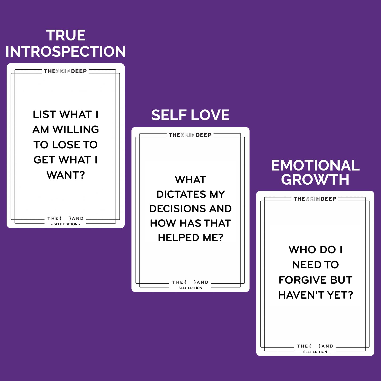 - {THE AND} SELF LOVE EDITION: Discover yourself with selfcare and reflection cards, designed to help you discover your true self; With 199 questions and prompts, it encourages you to explore your feelings, beliefs, and experiences, helping you gain a deeper understanding of who you are