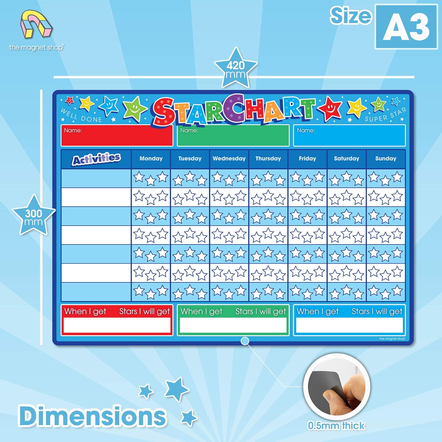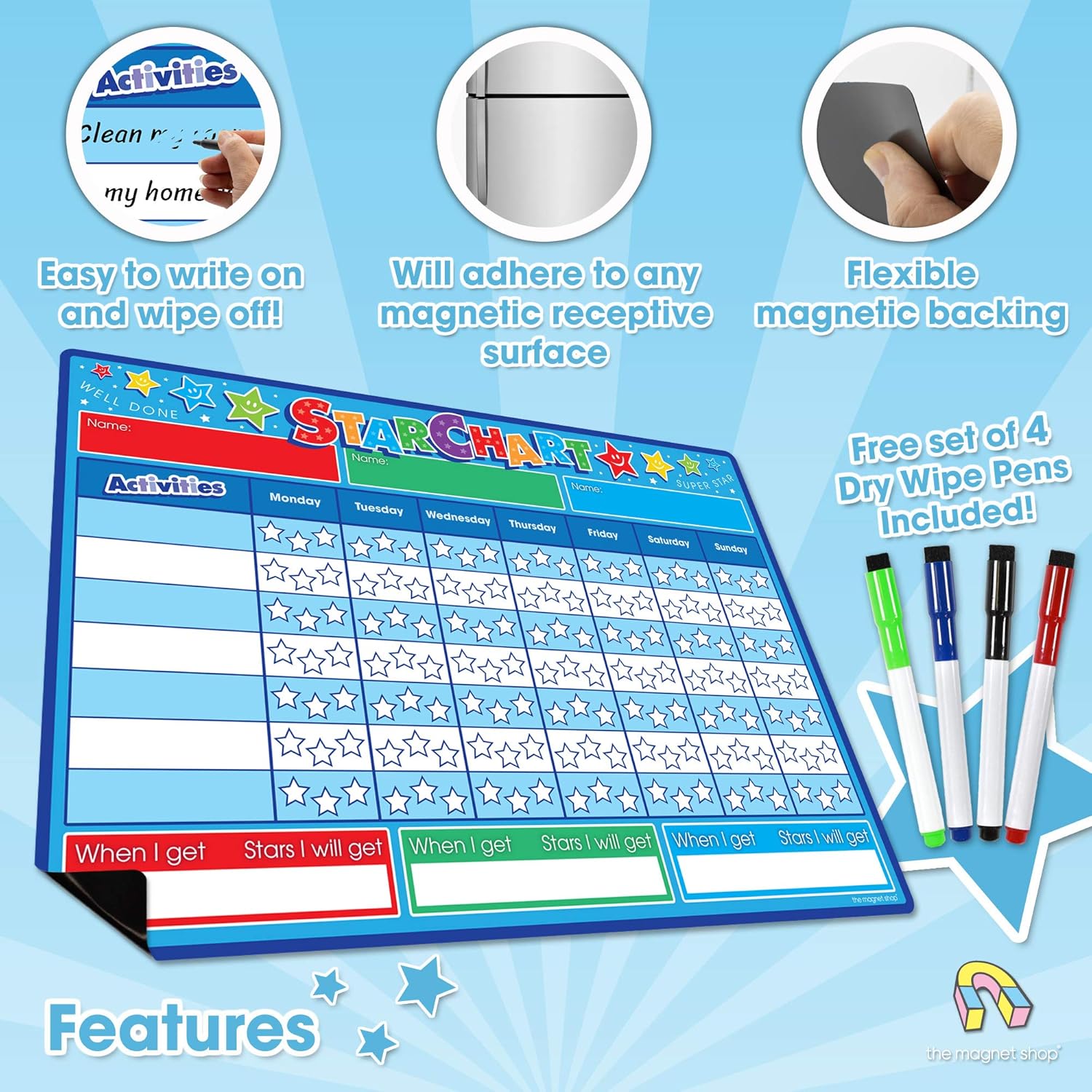The Magnet Shop Reward Chart for Children – Magnetic Star Chart for Recognising and Inspiring Good Behaviour in Toddlers and Kids, Boys and Girls. Comes with 4 Magnetic Coloured Dry Wipe Pens! (Blue)