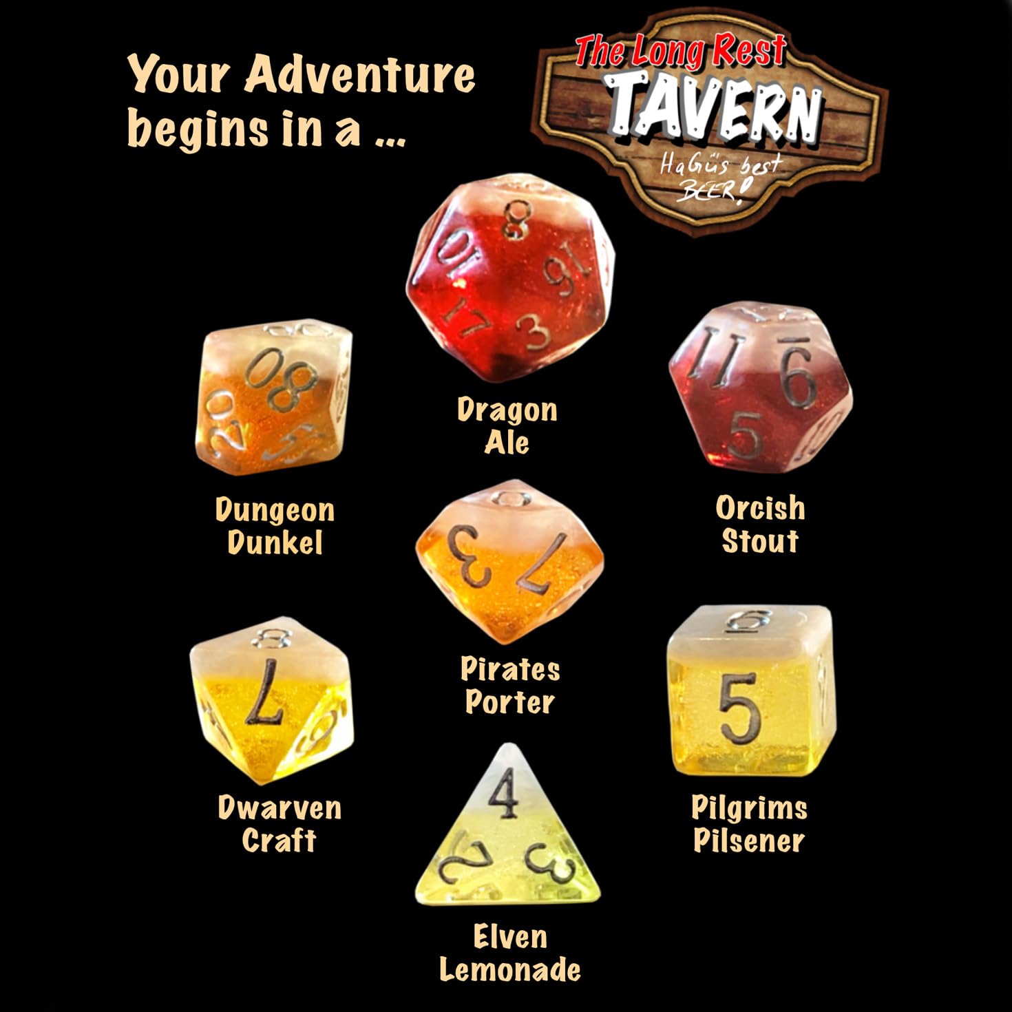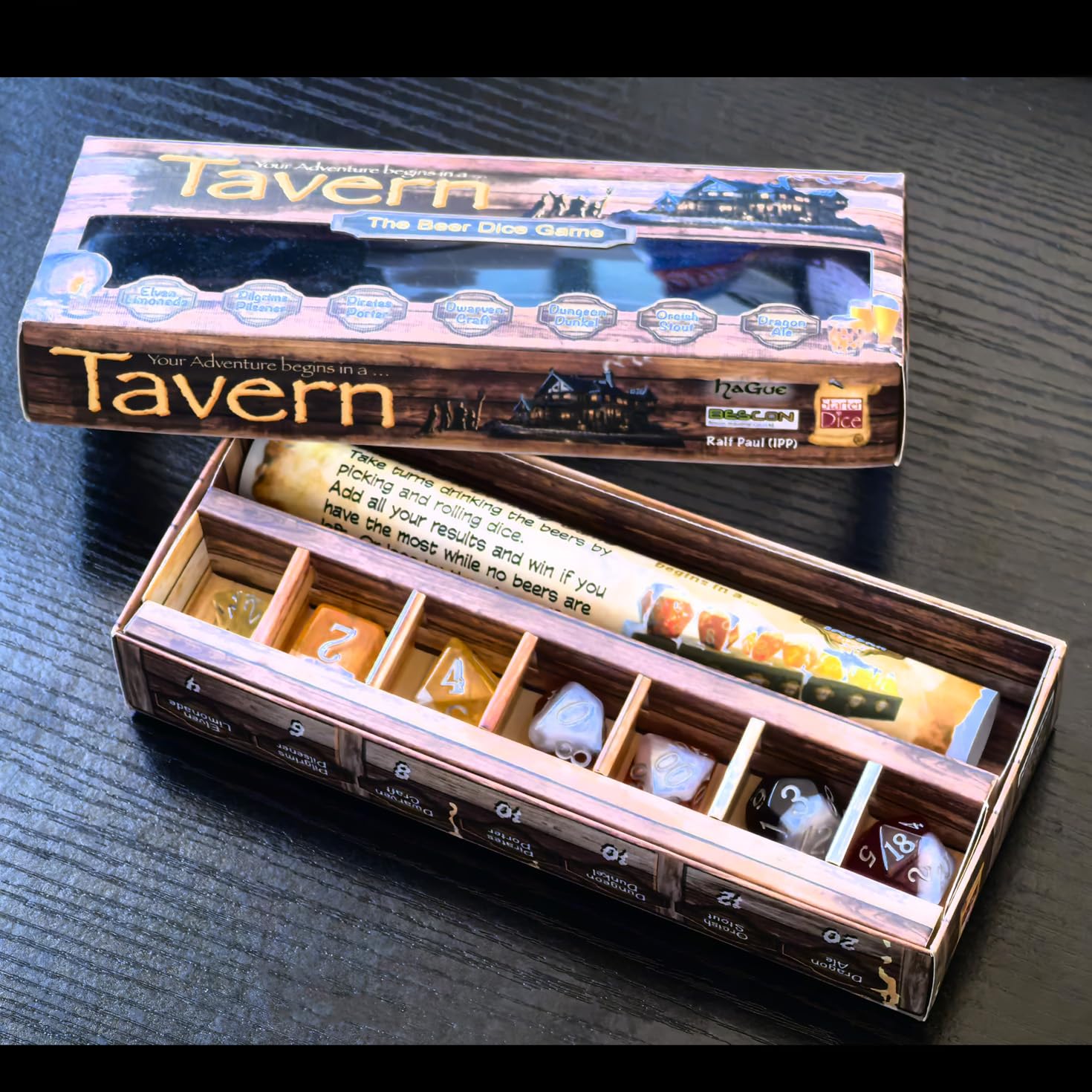 - Your adventure begins in a Tavern…- Based on our Beer Dice from 2022, we are offering this special tavern beer set that grows in strength (the Gradient Beer Dice Set): the darker the beer, the higher the damage! There is combination drinking games written by bartender Ralf Paul, are you dare to try?