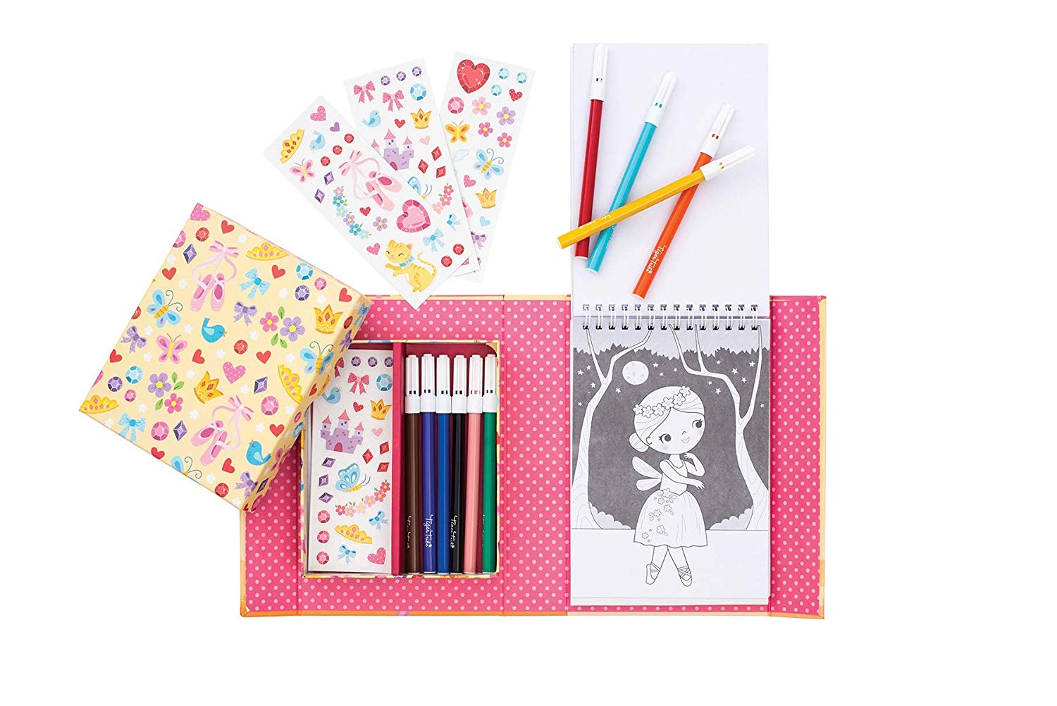 - Beautifully illustrated coloring set Jam packed with markers, stickers, and coloring pages, all in a perfectly portable package