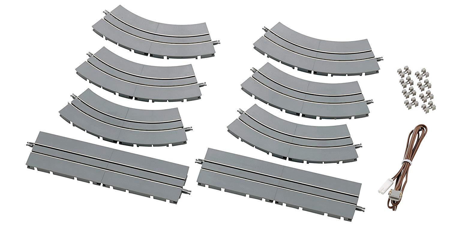 Basic set with 8 tracks, power connection and connection clips. The tram system from Tomytec is easy to build and just as easy to operate! The dimensions of the tram tracks are compatible with the Tomytec bus system, so great down town scenes can be built.