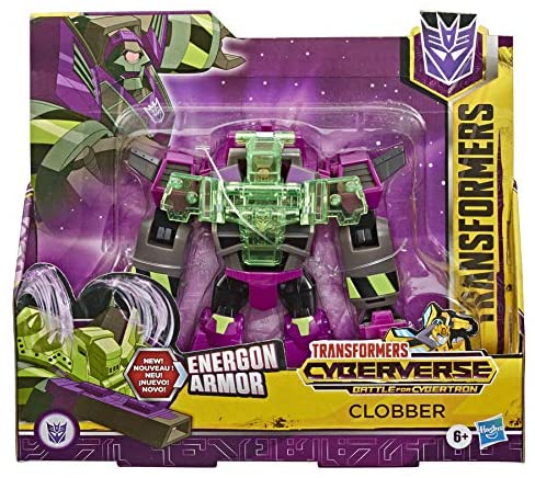 - TRANSFORMERS CYBERVERSE CHARACTER: Classic purple and green Clobber toy robot inspired by the Decepticon hulking bruiser from the Transformers Cyberverse cartoon, as seen on Cartoon Network and YouTube.