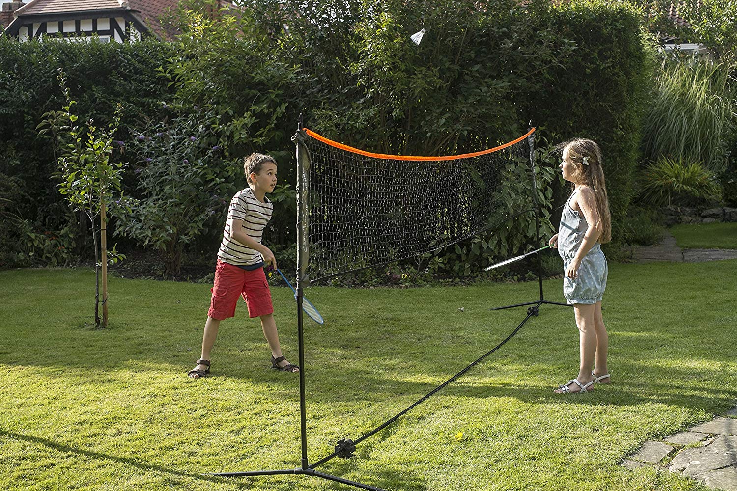 This playset from Traditional Garden Games is ideal for playing tennis or badminton in the garden or can be easily carried to the park or beach. Easy assembly and avoiding lost parts, the metal frame poles have a heavy duty cord threaded through their centres which makes building simple. Convenient quick and easy to assemble, the net can be set at 155cms for playing Badminton or Volleyball and easily adjusted to 85cms for tennis. The metal framed net is free standing on sand, grass or any hard surface without the need for additional support from pegs and guy lines. The metal frame can be easily dismantled and clipped together for storage in the small easy to transport canvas carry bag. This playset includes all the accessories you need to provide hours of fun for parties and family events, with 2 Badminton & 2 Tennis Racquets, 3 Shuttlecocks & 2 Tennis Balls, 1 Volleyball & Pump and an additional carry bag to hold them all. -Smashing