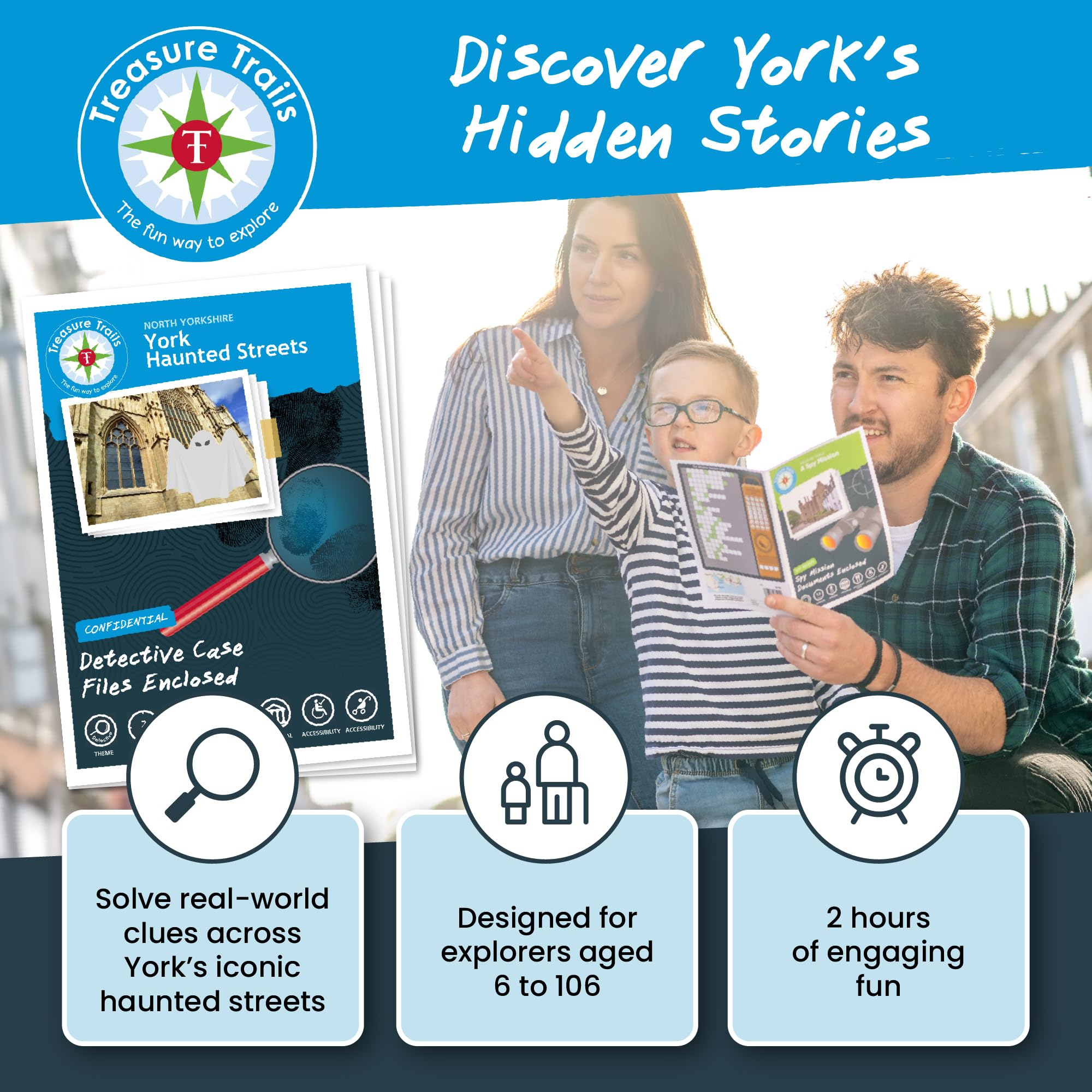 - Explore – Following the Treasure Trails booklet explore York, using one of our guides such as spy missions, ghost themes or a treasure hunt book discover the mystery of York, with fun packed walking giudes.