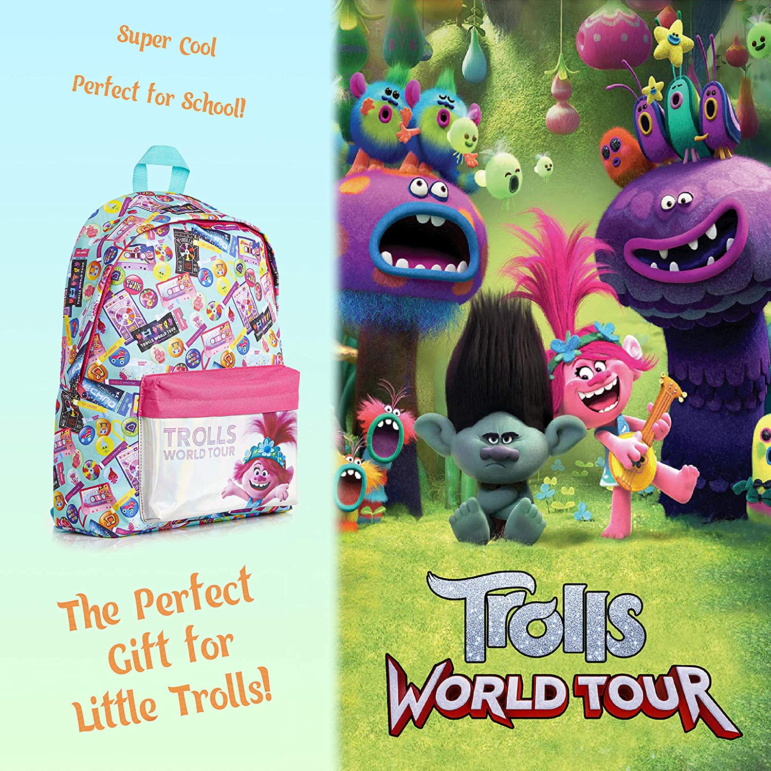 - ✔ TROLLS 2 WORLD TOUR – OFFICIAL BACKPACK — Your little girl will absolutely love this adorable backpack featuring her favourite troll, Poppy. This cute rucksack comes with a fun pattern from the movie Trolls 2 World Tour and the front pocket has a beautiful holographic design.