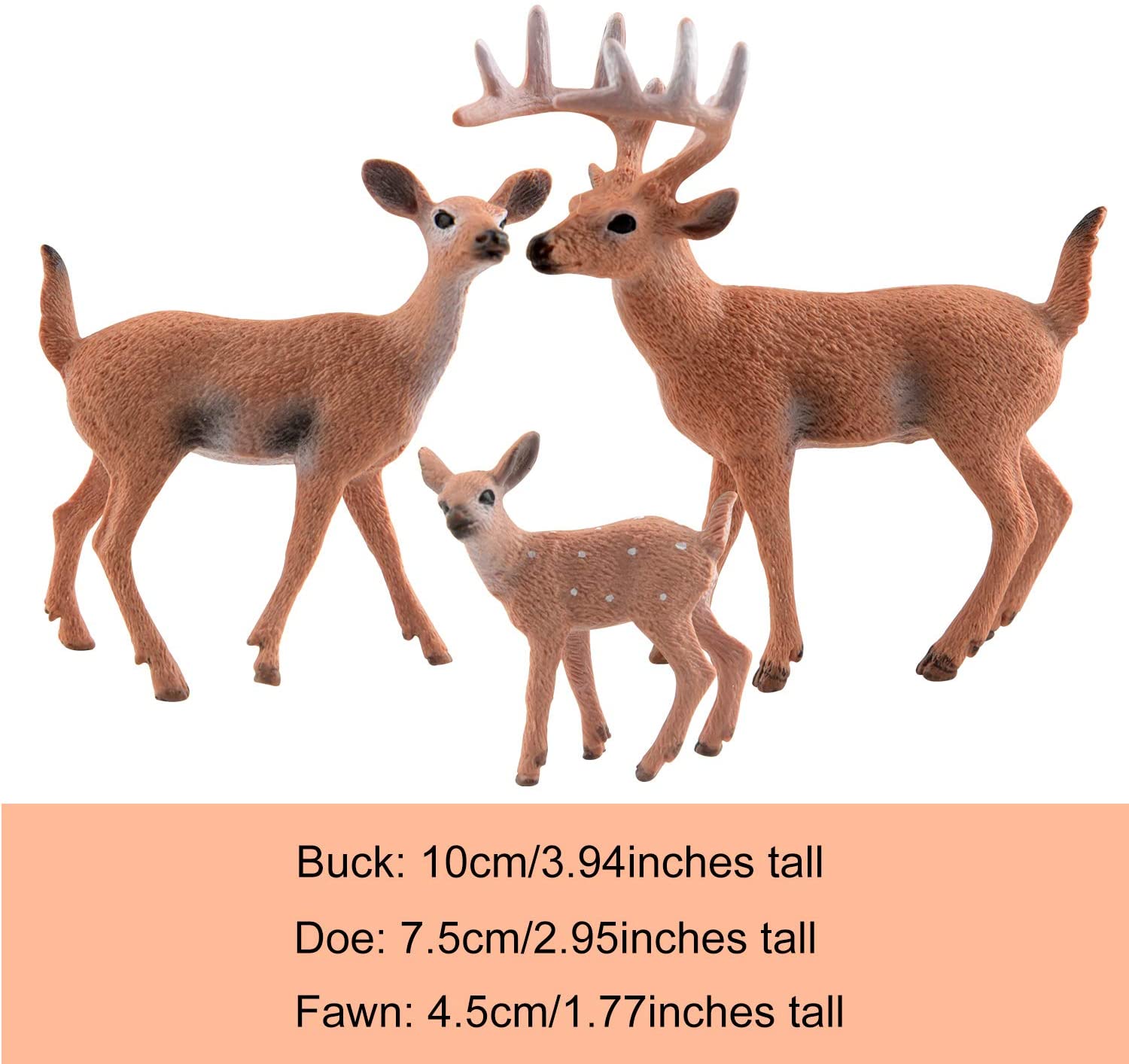 Animals Figure Babies Set Specifications: Color:Tan, grey & white Buck height: 10cm/3.94inches, 9.5cm/3.74inches; Doe height: 6.5cm/2.56inches, 7.5cm/2.95inches; Fawn height: 4.5cm/1.77inches; Dog height: 4cm/1.57inches; Rabbit height: 5.2cm/2.05inches; Bear height: 2cm/0.79inches Material: Plastic Feature: Great gift for kids toys, animal lovers The product is designed for making landscape scenes, decorating Christmas party, baby shower, birthday party and more. Package includes: 2 x buck 2 x doe 2 x fawn 1 x rabbit 1 x bear 1 x dog Notice: 1: Please keep away from kids under 3 years, play under adult’s supervision 2: Please get away from fire