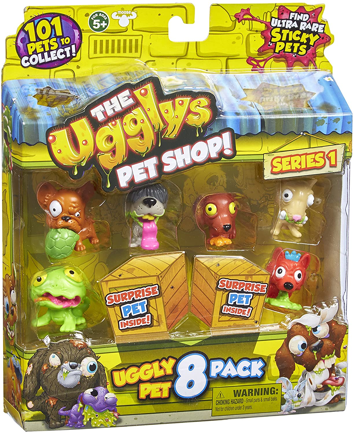 Introducing The Ugglys Pet Shop, the sickest, rudest and crudest pets yet! These collectable Uggly figurines are small in size but big on gross! With tonnes of disgusting pets to collect with all types of grotty finishes and rarities such as Rare, Special Edition, Ultra Rare and Limited Edition, you’re bound to find the perfect pal for you !Hang out with the gross gang! This 8 pack of putrid pets will add to your smelly tally of Ugglys! When you dare to buy this pack you are guaranteed at least one hidden poop to add to your collection. This pongy pack contains 8 figurines including 2 hidden characters, plus one or two hidden poops and a collectors guide. So come and get this gruesome gang. They are friendlier than you stink!