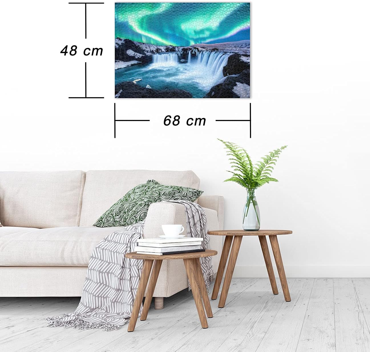- The size of the 1000 piece puzzle is 68 x 48 cm. Our puzzles offer excellent print quality in the puzzle motif and the puzzle box that serves as a motif template.