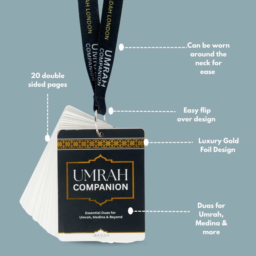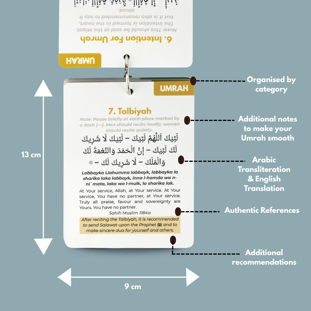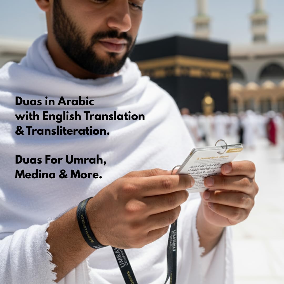 - Durable, water-resistant cards attached to a lanyardeasy to flip through while walking or praying during Umrah.
