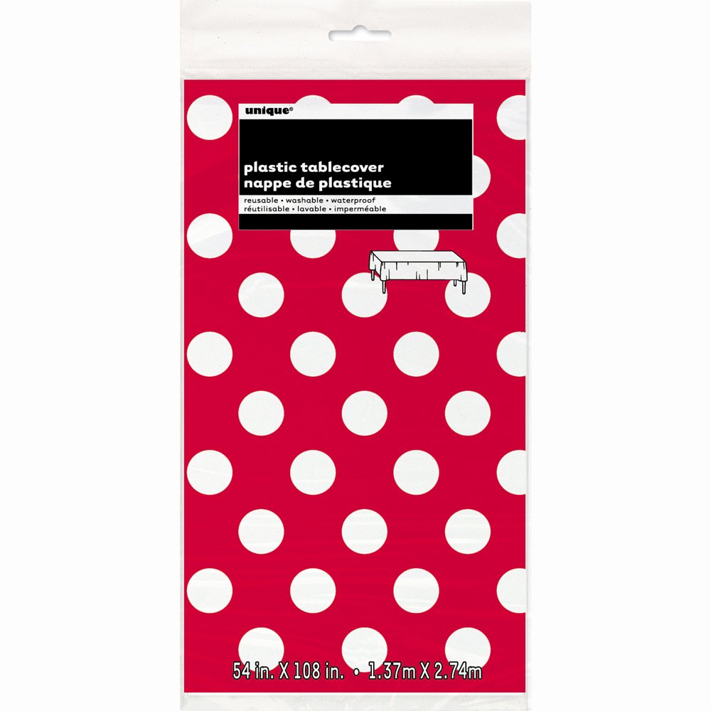 Unique Party 50262 – Plastic Red Polka Dot Tablecloth, 9ft x 4.5ft