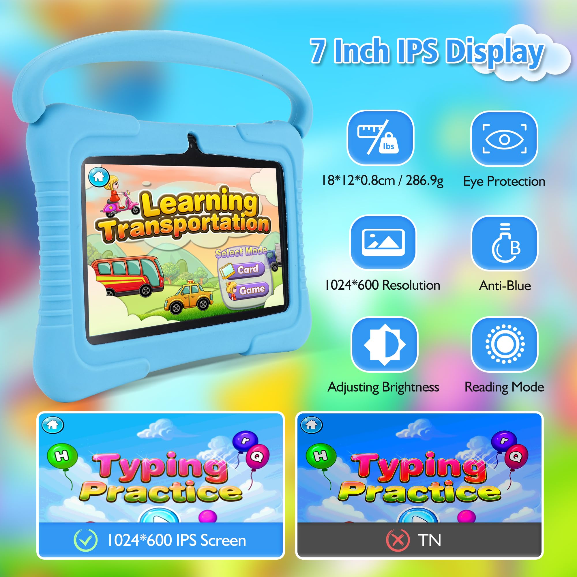 Veidoo Android Kids Tablet, 7 inch IPS Screen, 2GB RAM 32GB ROM, Safety Eye Protection, Education, Tablet for Toddle with WiFi, Games, Parental Control APP (Blue)