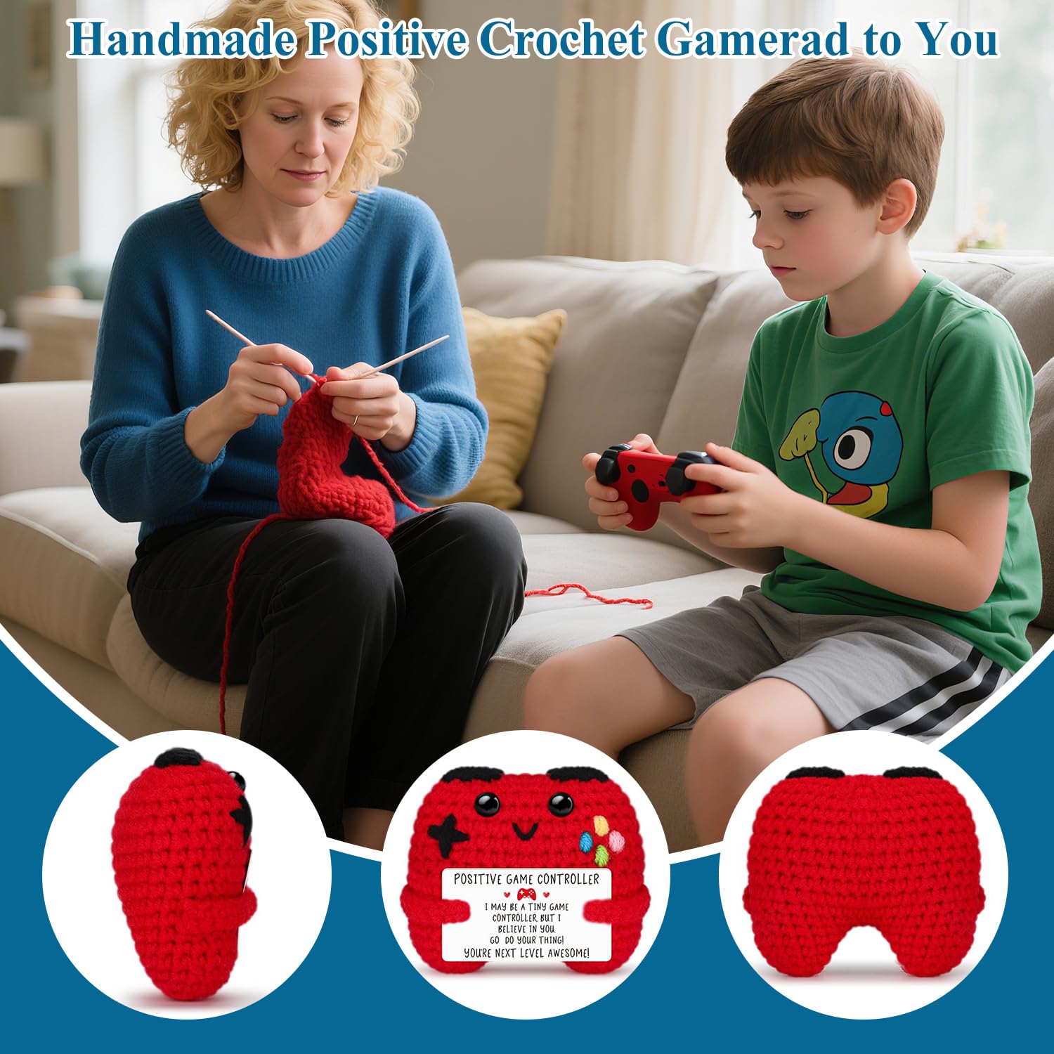 - Knitted Doll with Encouragement Card: This positive crochet game controller comes with a card with inspiring words written on it, which acts as a gentle reminder to encourage us to stay positive and embrace the beautiful moments in life with open arms