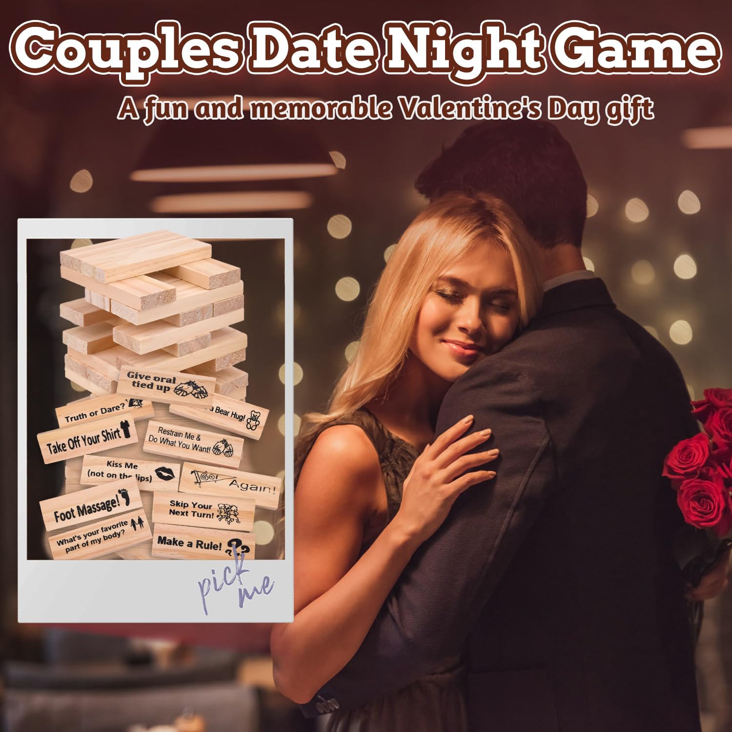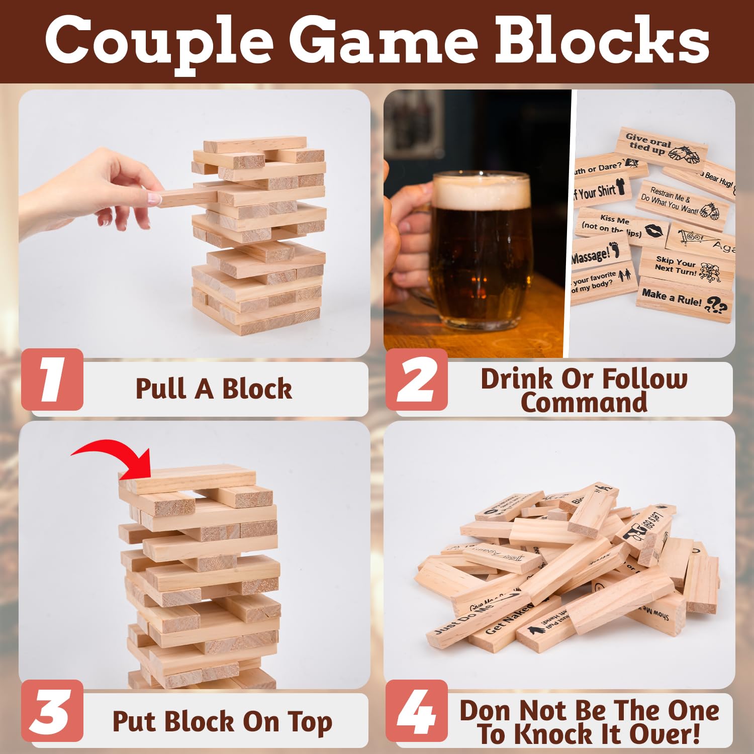 - Bond Strengthening ExperienceOur Fun Stacking Blocks for Couples offers a thrilling and captivating gameplay experience. This adult couple date night board game is designed to through entertaining gameplay, encouraged open communication, teamwork, and trust building. Use Couples Games For Adults to spice up date nights and increase the relationship between couples.