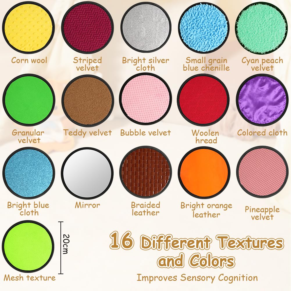 - Multi-Sensory ToysOur sensory toys for autistic children contains 16 different colors and textured mats, providing different tactile experiences. Each piece is 20*20cm in size, and the back is non-slip, not easy to fall. Sensory texture mats help children develop sensory cognition while playing.