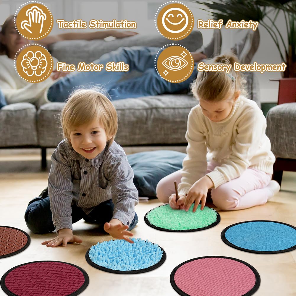 Vicloon Sensory Mats, 16 PCS Mini Tactile Sensory Tiles, Sensory Toys for Autism, Sensory Room Equipment Sensory Walls for Kids Toddler Fidgeting (Round)