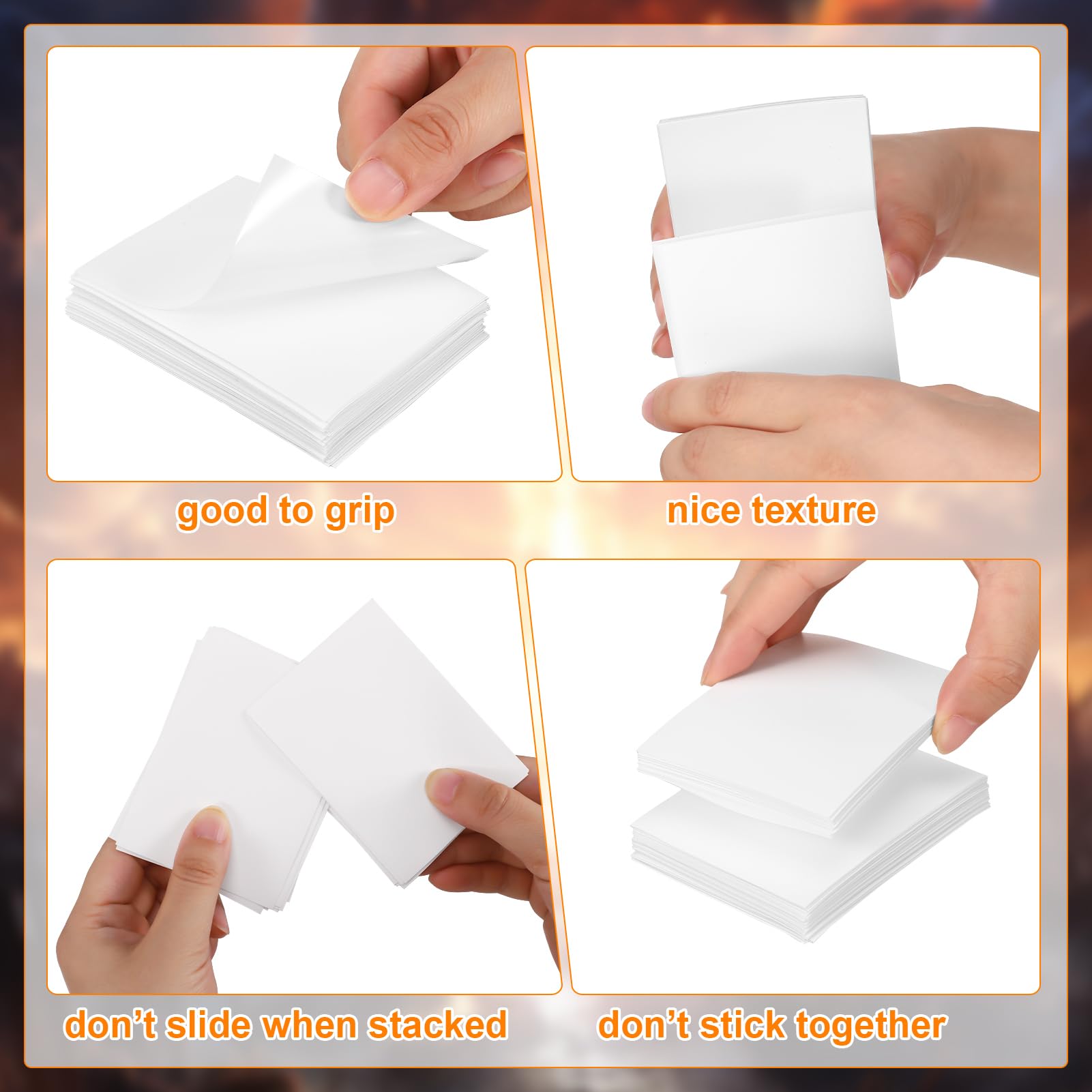 3. With a matte textured back, our sleeves not only feel great but also facilitate smooth shuffling, enhancing your gaming experience. The added layer of protection shields your cards from scratches and fingerprints, maintaining their pristine condition for longer periods.