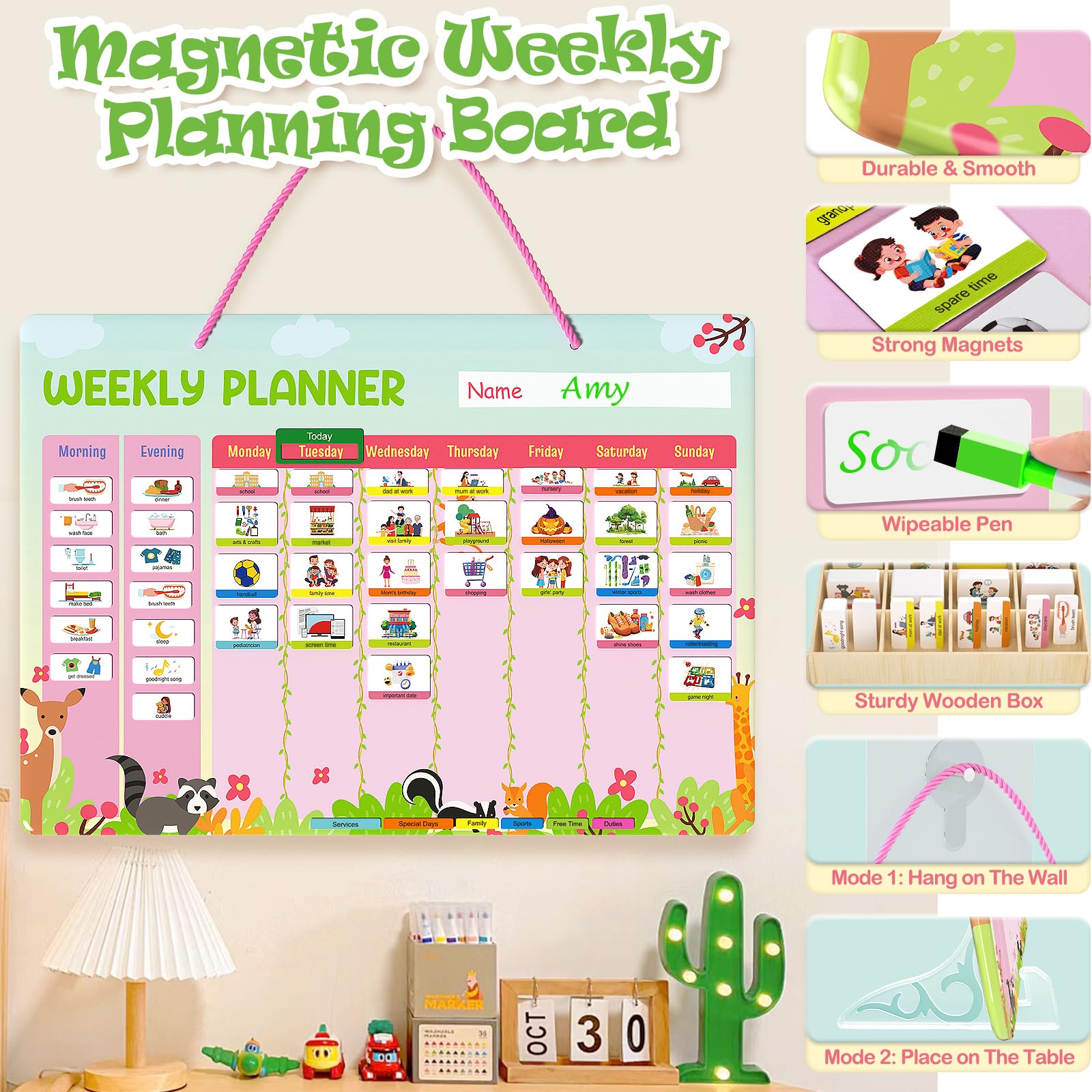 - A Good Behavior for Education: Our magnetic weekly planner includes a magnetic board, activity magnets, a hanging cord, a wipeable pen, 2 display easels, 2 hooks, and a practical storage box. It provides an interactive way to help kids stay organized and on schedule throughout the day.