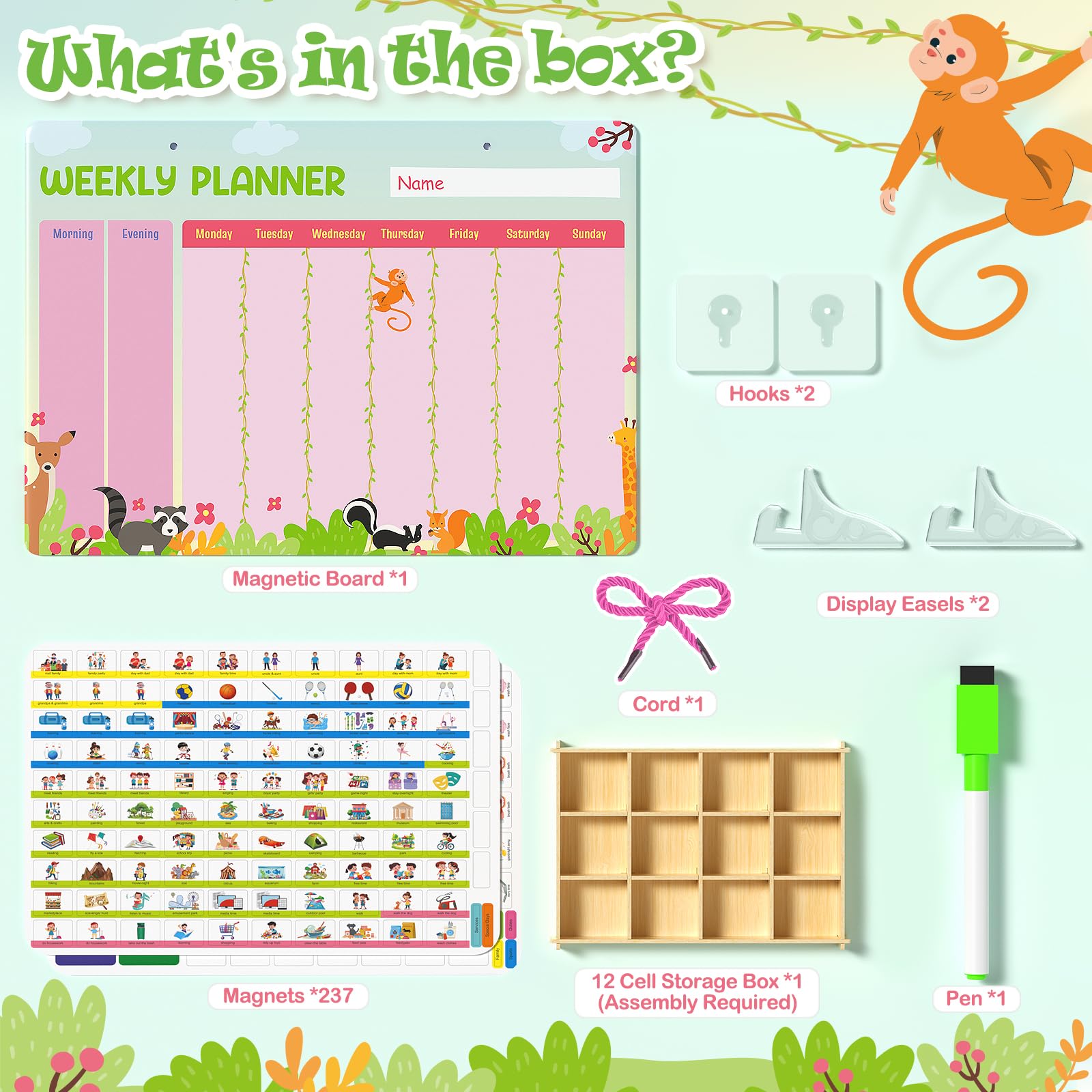 Visual Timetable Weekly Planner for Kids – Magnetic Schedule Board with 237 Magnets, Reward Charts for Children Behaviour – Daily Routine and Chore Chart for Kids Autism (Animal Theme)