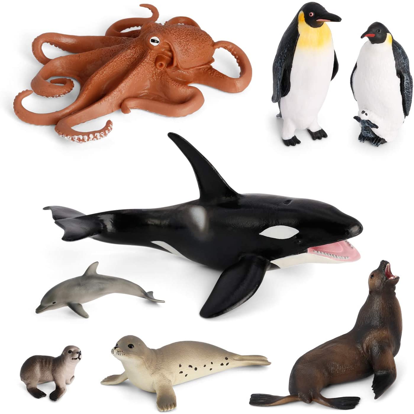 Volnau Sea Creature Toys 8PCS Antarctica Ocean Animal Figurines for Toddlers Kids Sea Life Toy Pack Preschool and Bath Plastic Fish Toy Penguin Killer Whale Decorations Figures Set