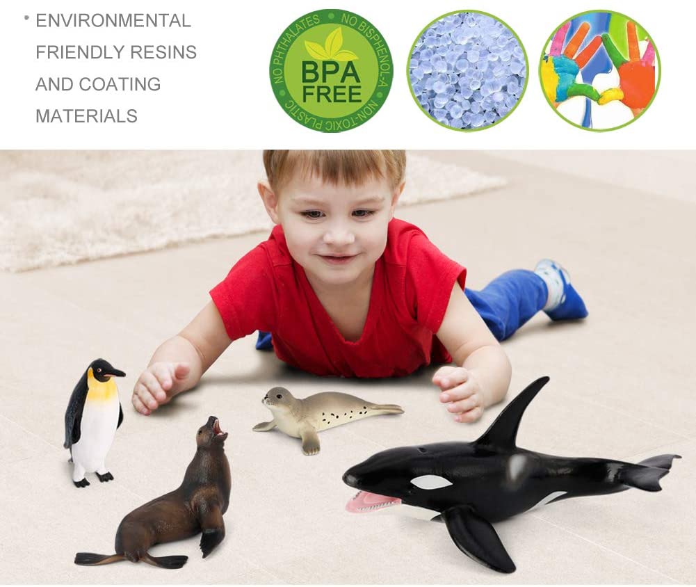 - 8 Antarctica Figures set – Package includes 8 Antarctica animal figures: Killer Whale, Emperor Penguin with Baby, Emperor Penguin, Octopus, Sea Seal, Sea Lion, Baby Sea Lion, Dusky Dolphin.