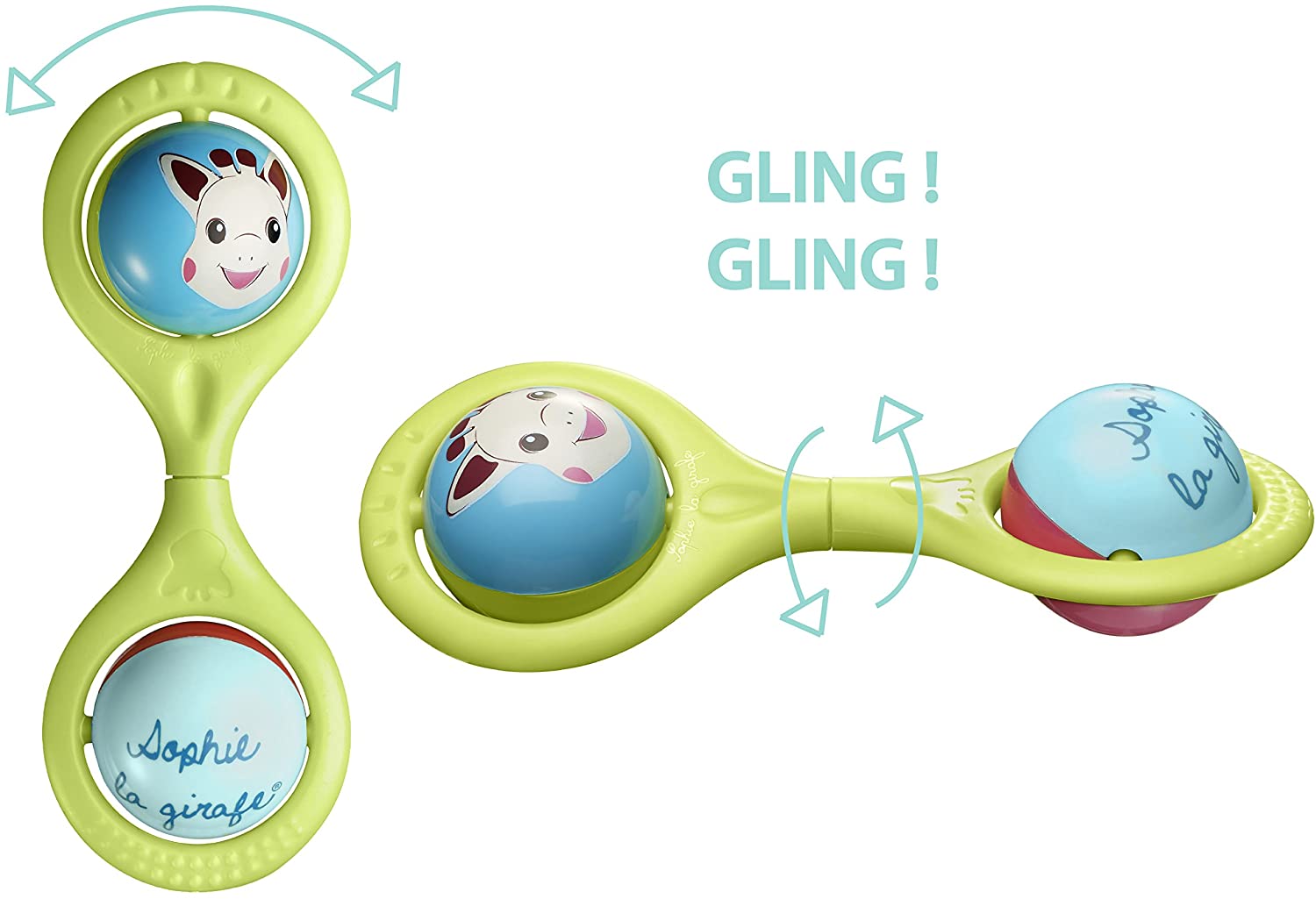 The classic Baby’s Awakening. With its soft and rounded by everyone for growing babies. Two Balls for turning and seeing the colours mixing and the head of Sophie the Giraffe tournoyer. of bells to ring and both ends to be tourner. textures to develop the touch. easy to grasp and move thanks to its shape adapted to small hands. made of color in random.