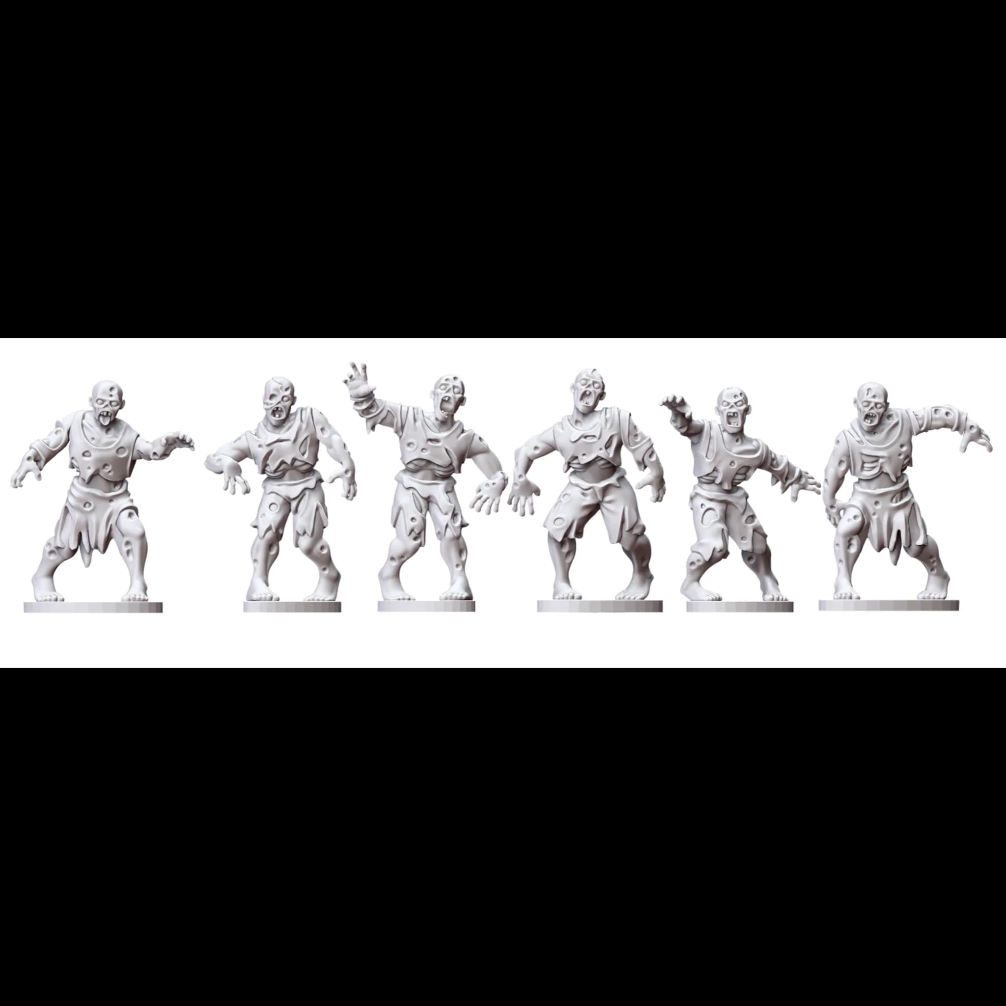 BRAINS! This may be the most versatile box of Zombies ever made! We’ve designed the bodies in nondescript rags so that they could represent nearly any type of clothing. And then we’ve added a stunning number of head types (75 unique!) so that these can be used to represent zombie versions of any of the following: Ancient Rome Dark Ages Viking Period 18th Century and Pirates Napoleonic French and British Cowboys WW1 and WW2 British, Germans, and French Modern Heads – Police, Fire, Construction, Civilians And of course enough “regular” zombie heads for all There are extra arms that can be used with other historical bodies to zombify them too! This hard plastic box set includes enough parts to build 30 28mm zombies. There are six unique bodies, 18 arms, and a massive 75 heads on each frame! (5 frames in the box) Models require assembly and painting. Bases are not included.