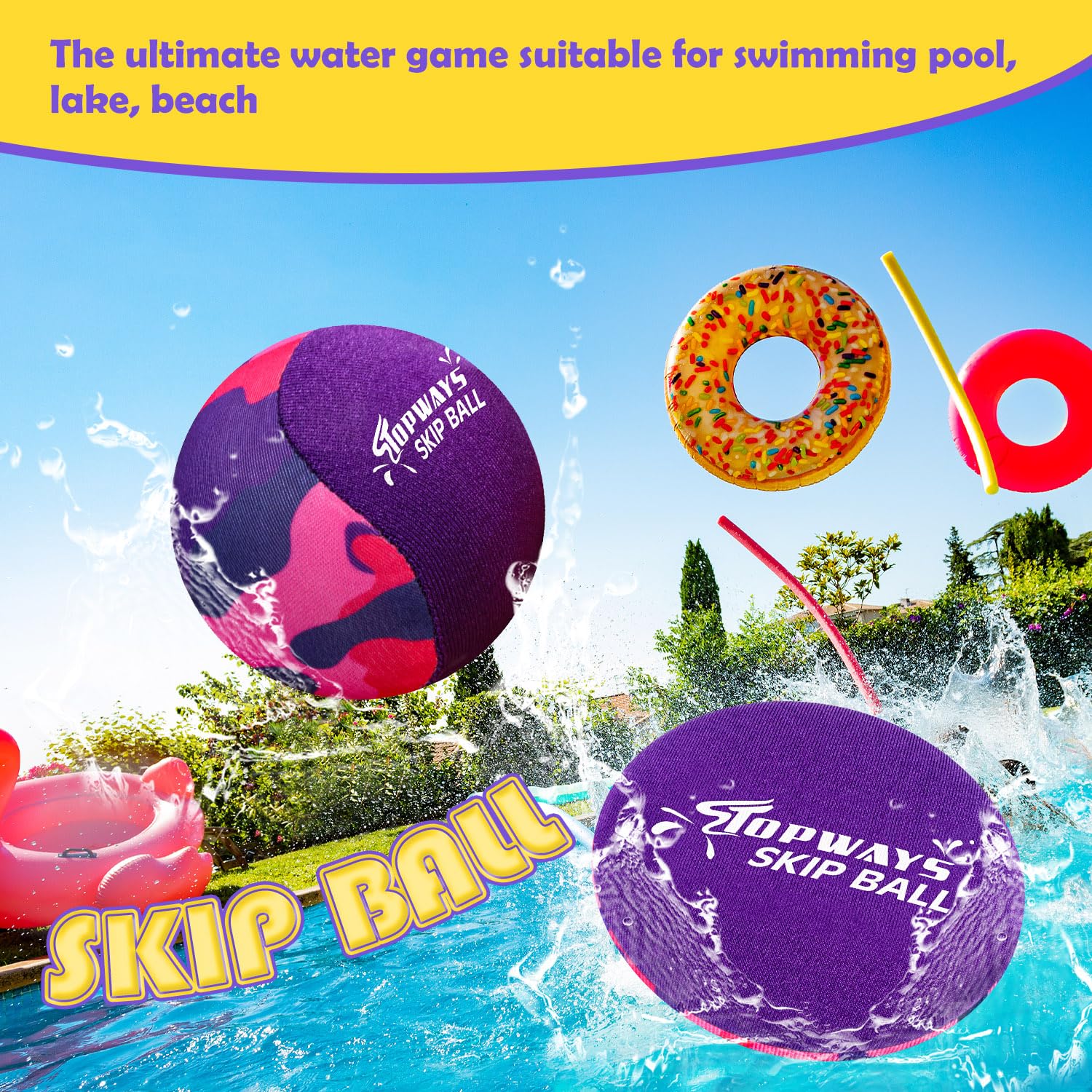 Water Bouncing Ball, Swimming Pool Toys Water-Proof Beach Toys, Water Skipping Ball, Pool Games for Kids & Adults (2PCS skip balls and water discs)