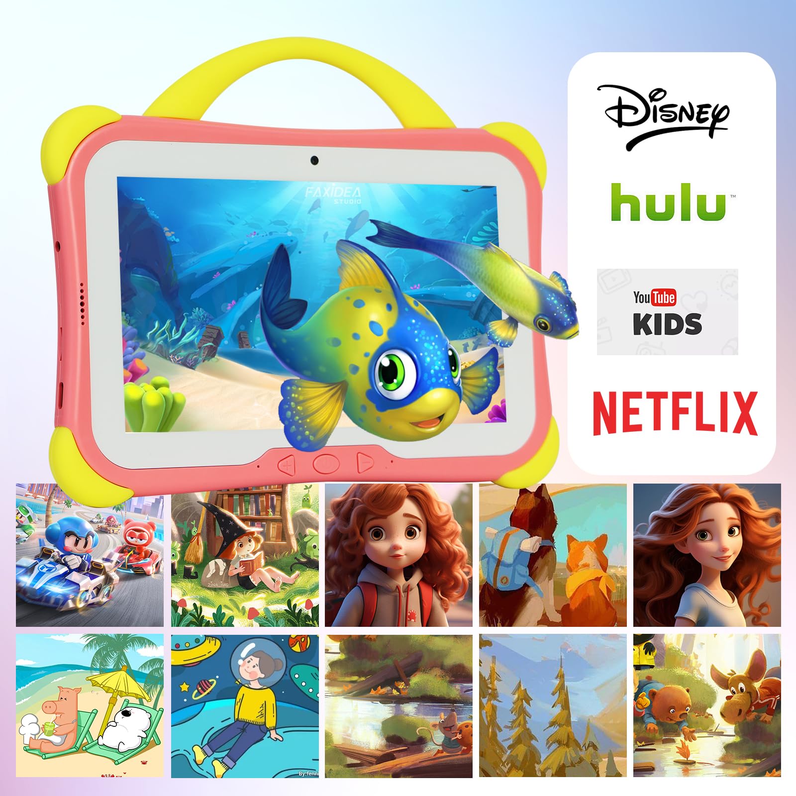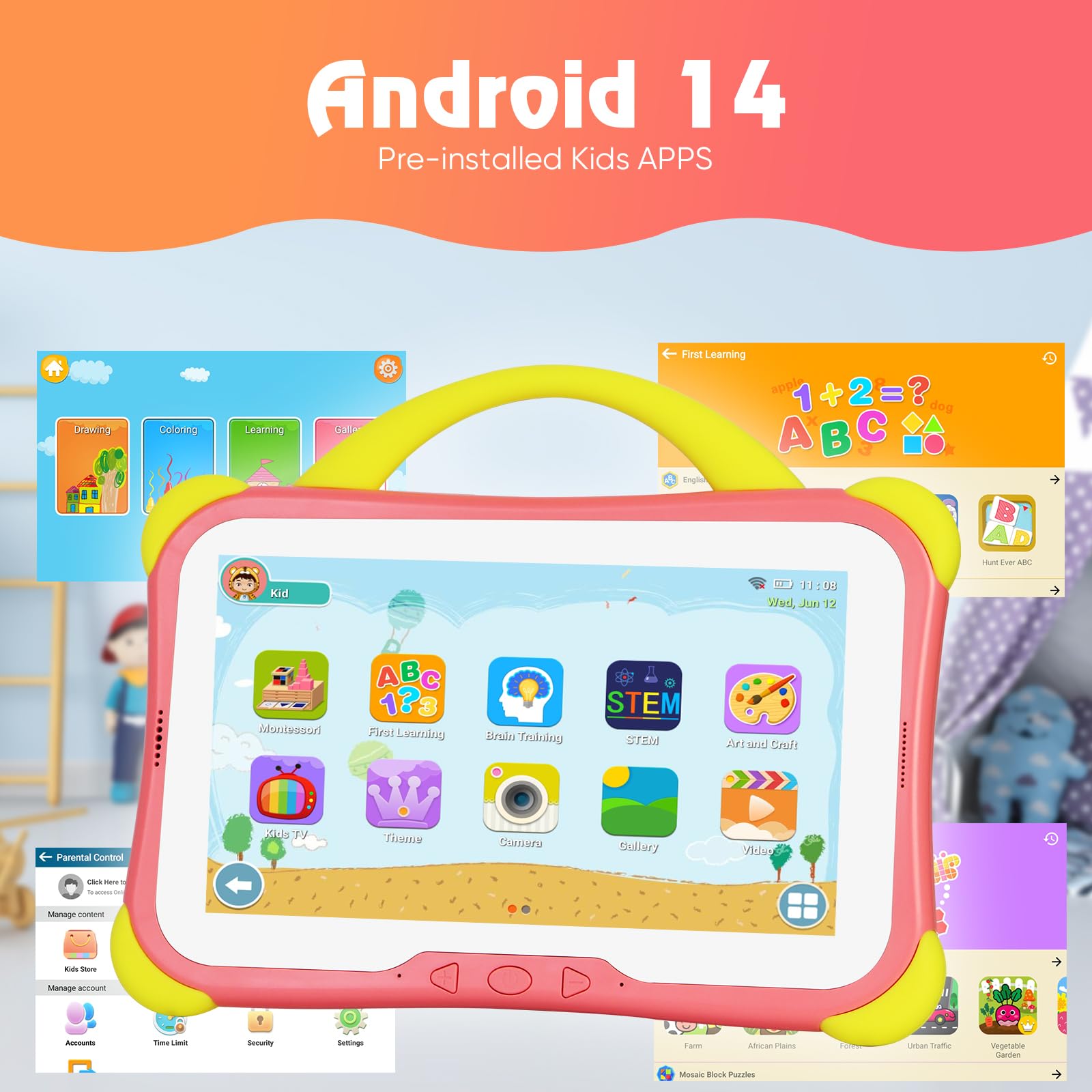 weelikeit Kids Tablet, Android 14 Tablet for Kids, 7 inch with Case, 8GB (4+4), and 64GB (Expandable up to 512GB) for Toddler Children, Parental Control, Dual Camera, WiFi, Gift, for Ages 3-14 (Pink)