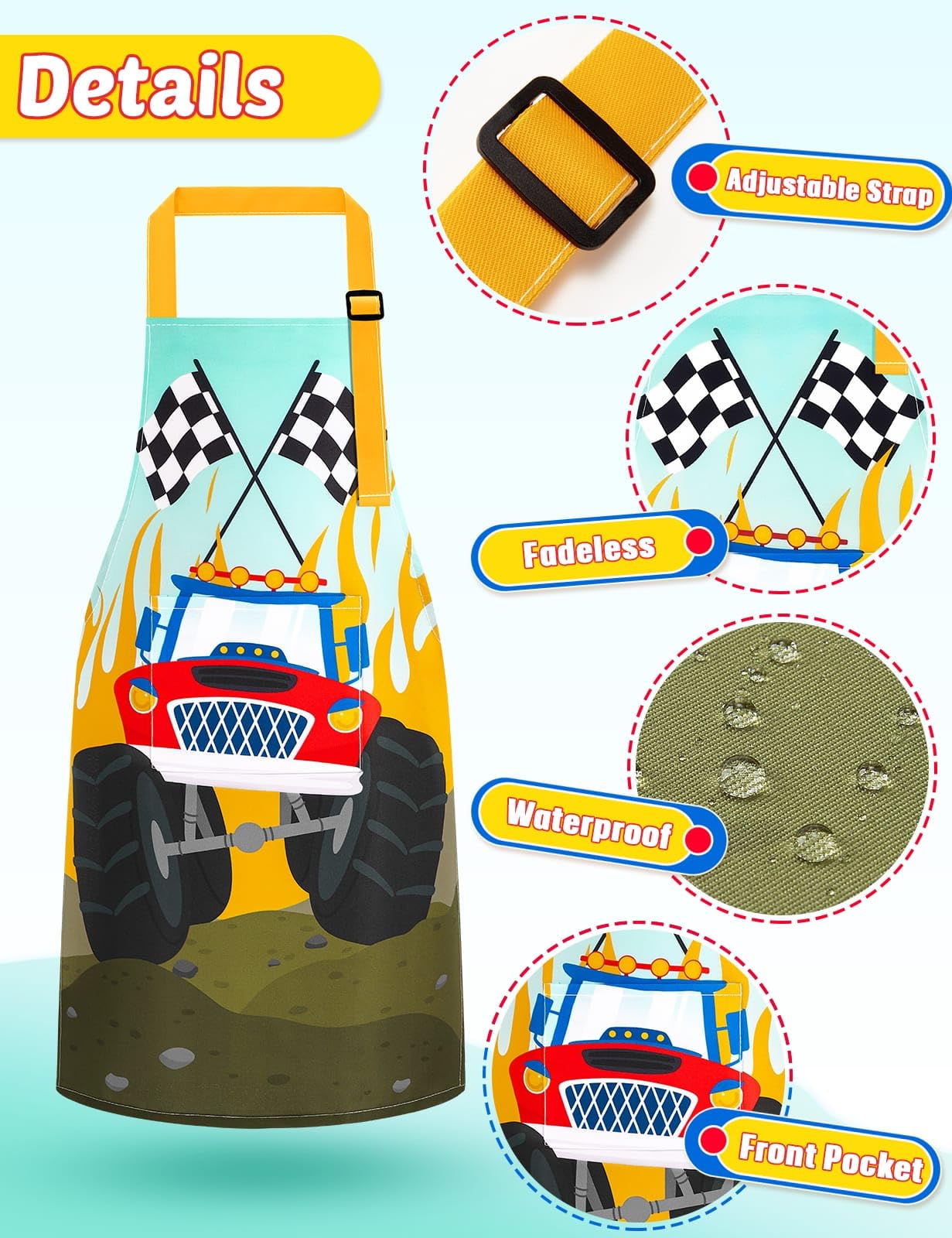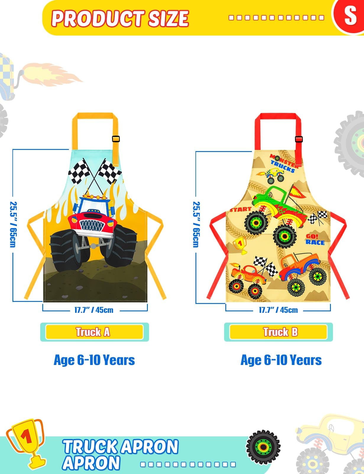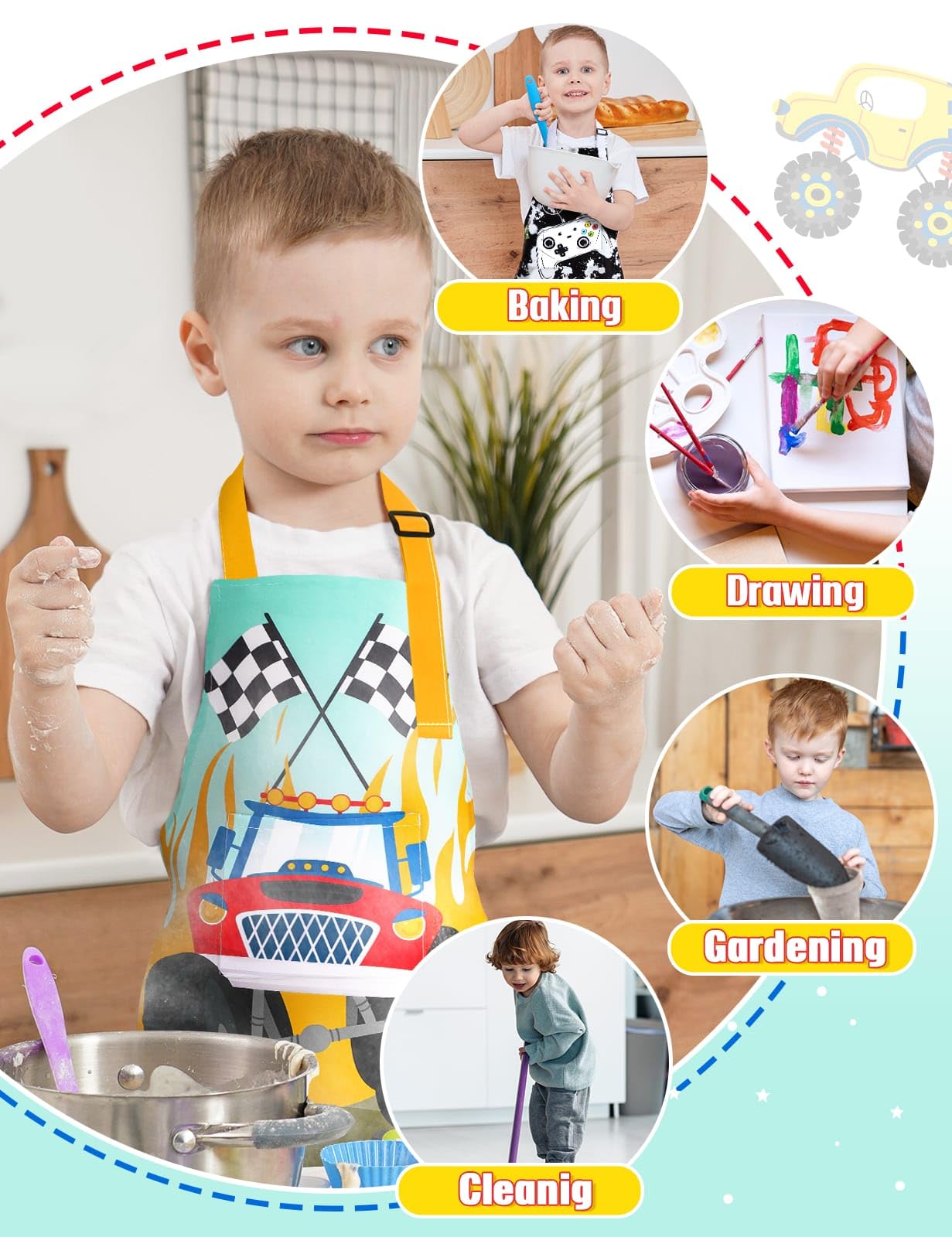 1.Two-piece apron set is convenient for use in different scenarios or to bring protection to more children. There are two size for your choice: XS – 38 x 48 cm, suitable for 4-6 years kids. S – 45 x 65 cm, suitable for 7-10 years kids.
