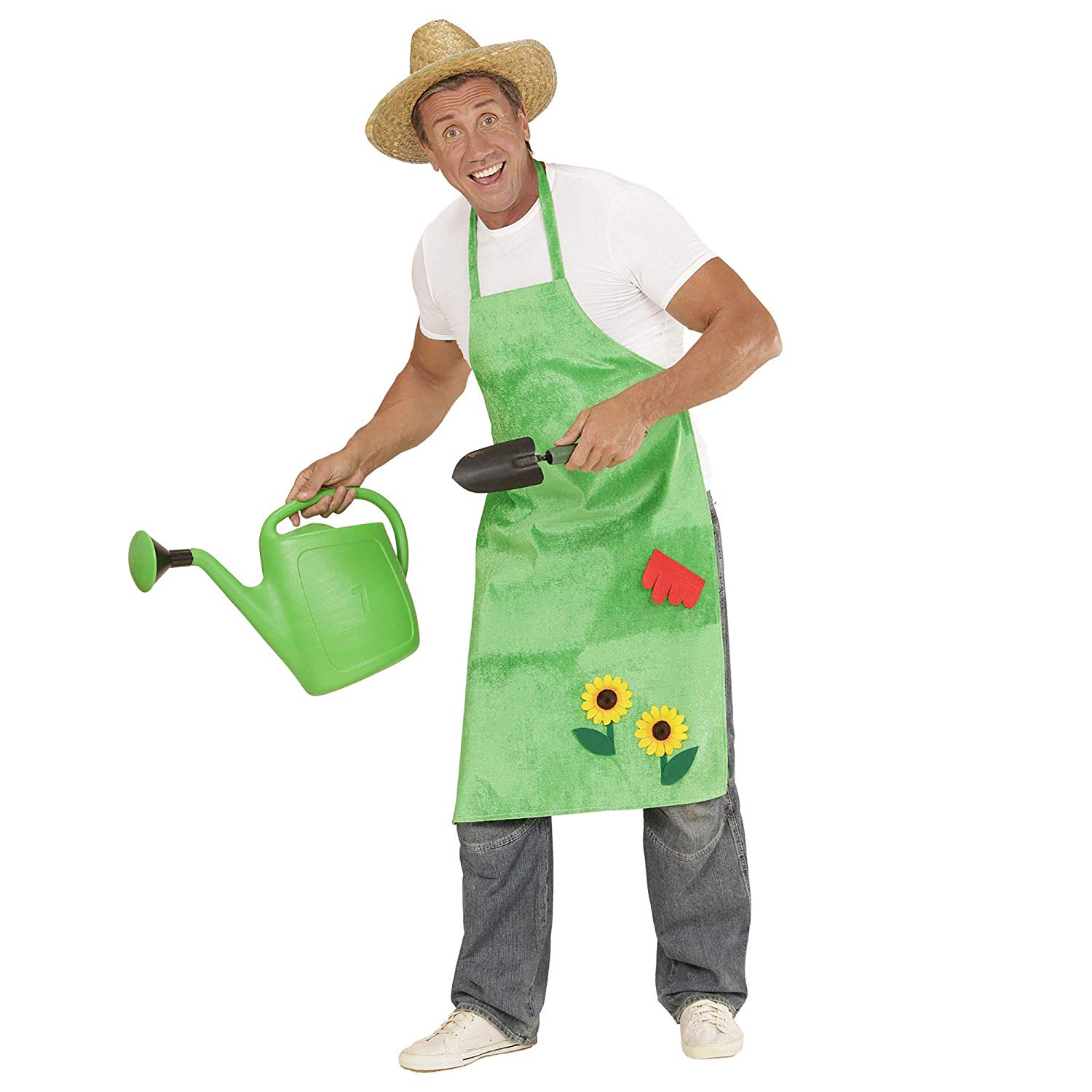 The green garden apron with sunflower from Widmann is ideal for any gardener or Gärtnerinkostüm. The apron in one size – suitable for adults, has the colour green and is decorated with two sewn, Yellow Sun Flowers, as well as a sewn-on, red garden gloves. The Garden Apron with sunflowers doubles as a class feature on a theme, fancy dress or fancy dress party with your age or date. The company Widmann produces high-quality costumes, all in one go for accessories and decorative needs. If a spooky mask to Halloween, a complete outfit to carnival or the matching hat for your next themed party – the huge range of Widmann has guaranteed every the perfect for the next occasion.