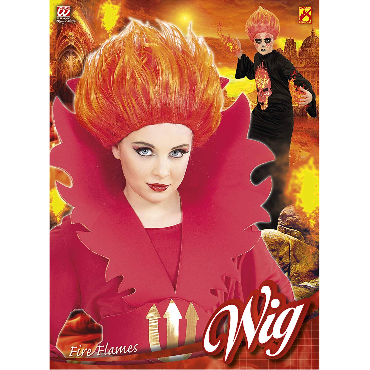Wig flames of fire in bag, ideal for Halloween Fancy Dress, Carnival, all in mask and themed parties, for fun in the company.