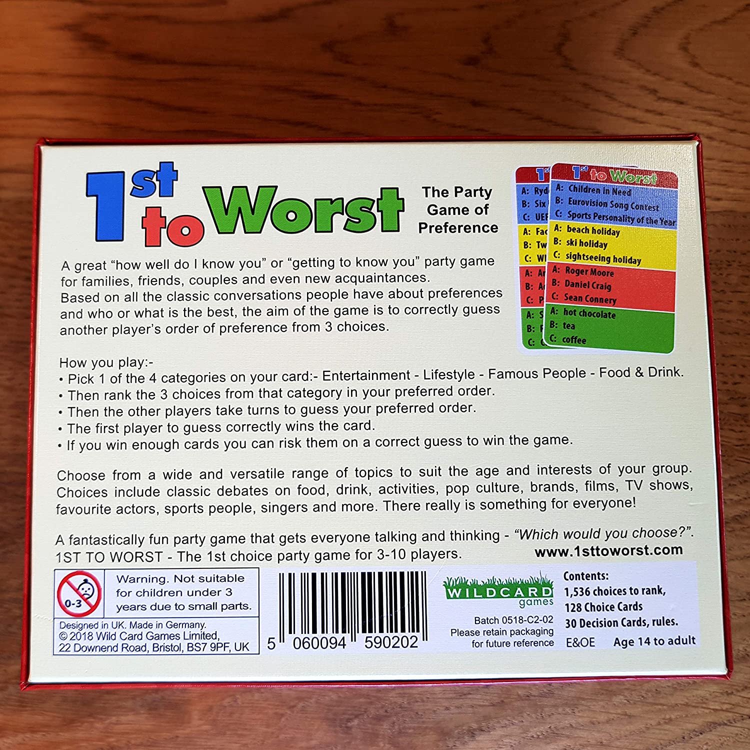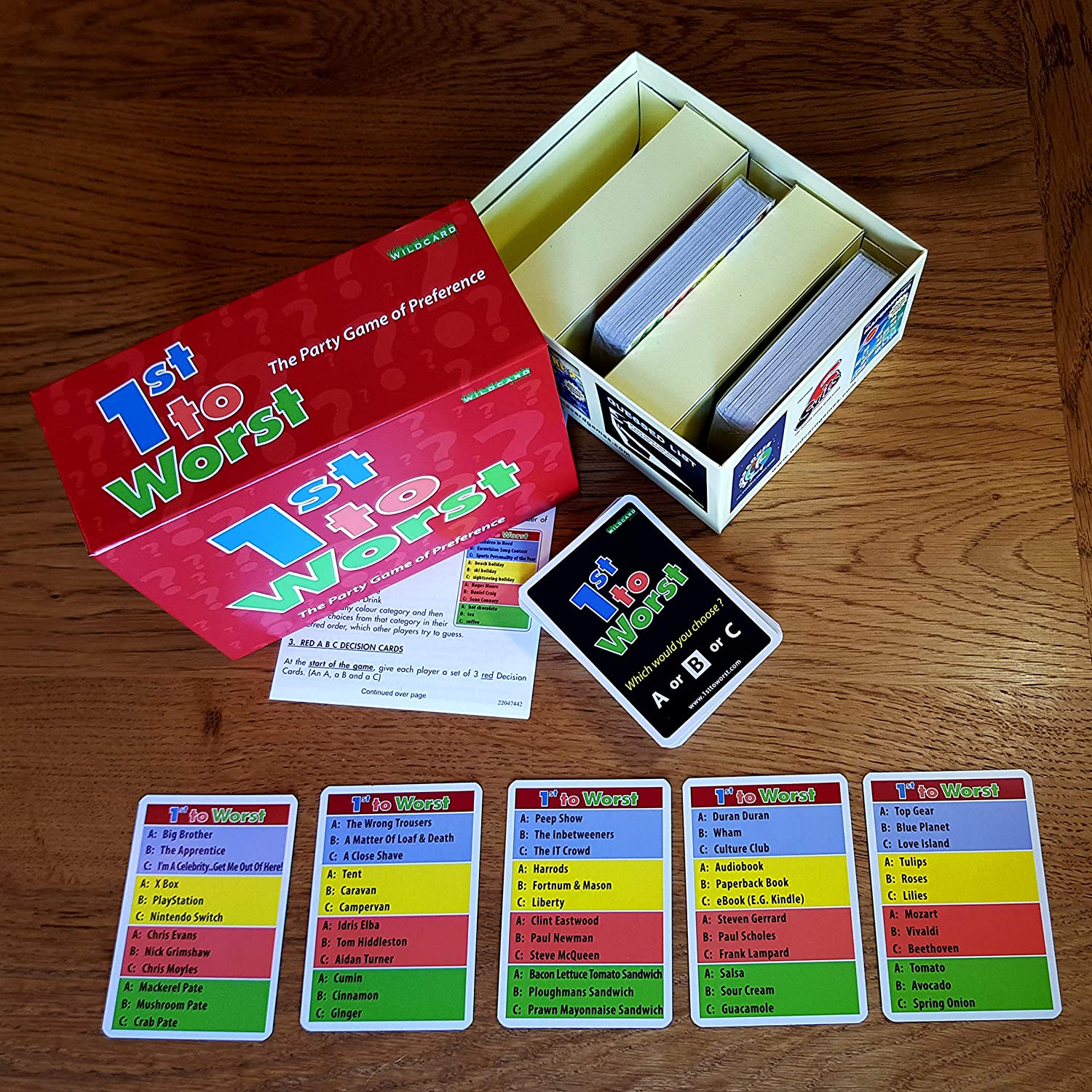 Wild Card Games 1ST TO WORST! – The classic multi player party game of preference where you guess a players preferred order from 3 choices